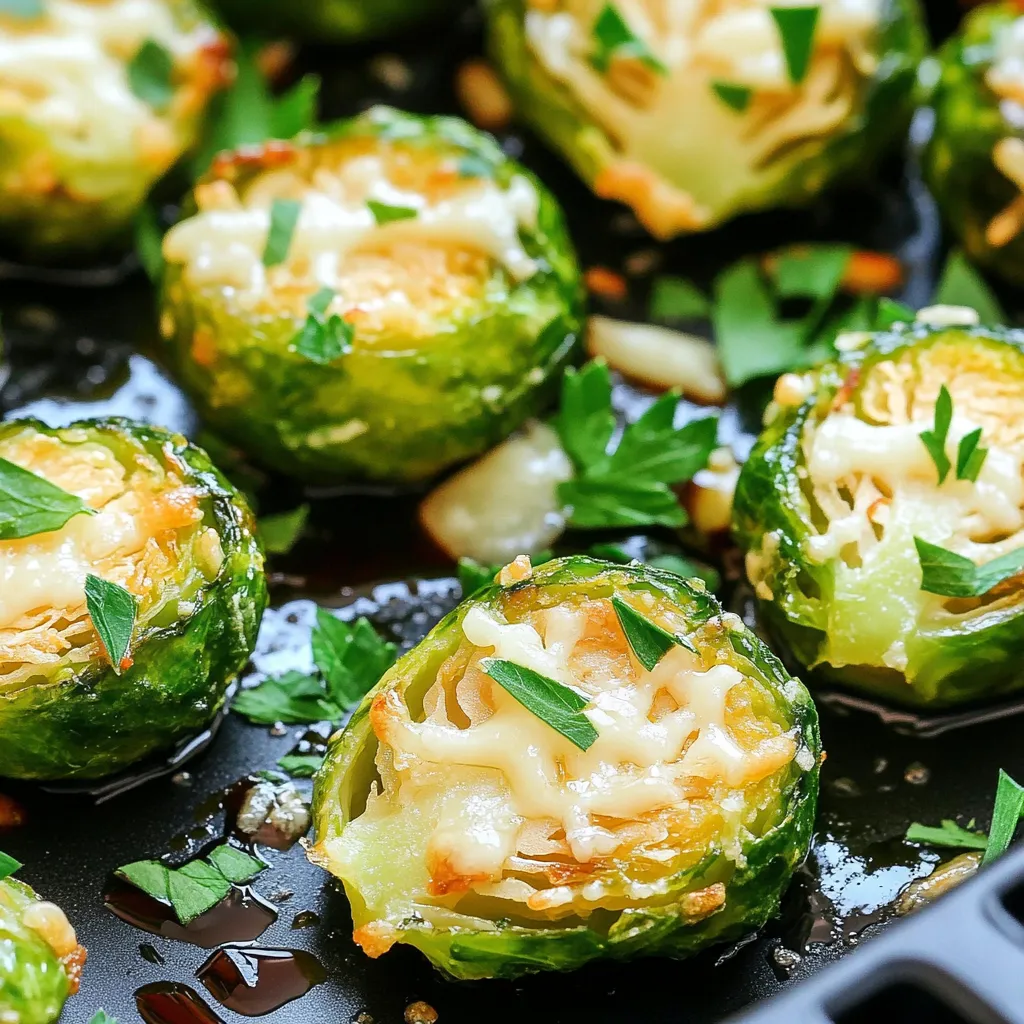 Once cooked, take the Brussels sprouts out of the air fryer. Place them in a serving dish. If you like, drizzle with balsamic glaze for a touch of sweetness. Finally, chop some fresh parsley and sprinkle it on top. This adds a nice color and fresh flavor. Enjoy your Air Fryer Garlic Parmesan Brussels Sprouts!