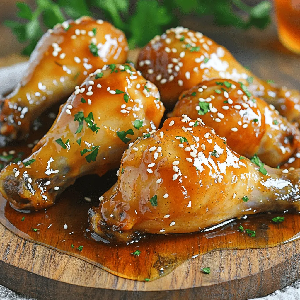 To make the perfect Air Fryer Honey Garlic Drumsticks, gather the following items: - 8 chicken drumsticks - 1/4 cup honey - 3 tablespoons soy sauce - 4 cloves garlic, minced - 1 tablespoon olive oil - 1 teaspoon ground ginger - 1/2 teaspoon black pepper - 1/2 teaspoon salt - 1 teaspoon sesame seeds (for garnish) - Fresh parsley (for garnish) Each ingredient plays an important role. The chicken drumsticks are the star of the dish. Honey gives a sweet taste that balances the saltiness of soy sauce. Minced garlic adds a strong flavor that makes the dish shine. Olive oil helps keep the chicken moist while cooking. Ground ginger gives a warm, spicy note that enhances the flavor. Black pepper and salt are key for seasoning and bringing all the tastes together. Finally, sesame seeds and parsley add a nice touch for presentation. These ingredients not only blend well but also create a dish that is both savory and sweet. Enjoy the cooking process, and let the flavors come together! To start, grab a mixing bowl. In this bowl, combine the following ingredients: - 1/4 cup honey - 3 tablespoons soy sauce - 4 cloves garlic, minced - 1 tablespoon olive oil - 1 teaspoon ground ginger - 1/2 teaspoon black pepper - 1/2 teaspoon salt Now, whisk these ingredients together until they blend well. You want a smooth marinade that coats the chicken nicely. Next, take your chicken drumsticks and add them to the bowl. Make sure to coat each drumstick thoroughly in the marinade. You want all parts of the chicken to soak up that delicious flavor. For the best taste, cover the bowl with plastic wrap. Place it in the refrigerator to marinate. I suggest letting them sit for at least 30 minutes. However, if you have time, marinate for 2 hours. This gives the flavors a chance to really shine. Now it’s time to cook! First, preheat your air fryer to 400°F (200°C). This should take about 5 minutes. Once it’s hot, take the drumsticks out of the marinade. Shake off any extra liquid. Place them in a single layer in the air fryer basket. Cook the drumsticks for 25-30 minutes. Halfway through, turn them to ensure even cooking. The chicken should reach an internal temperature of 165°F (74°C) when done. When cooked, remove the drumsticks from the fryer. Let them rest for a few minutes before serving. Enjoy the sweet and savory delight! For the best flavor, marinate the drumsticks for at least 30 minutes. If you can, aim for 2 hours. This allows the honey and garlic to soak in deeply. Each drumstick needs a good coat of marinade to taste amazing. Make sure to cover every inch. A well-coated drumstick means every bite is flavorful. Avoid overcrowding the air fryer. If you put in too many drumsticks, they won’t cook evenly. Cook in batches if needed. This helps achieve crispy skin and moist meat. Always check the internal temperature. You want it to reach 165°F (74°C). This ensures your chicken is safe to eat. Serve your drumsticks on a large plate or platter. Drizzle extra honey on top for a sweet touch. Garnish with sesame seeds and fresh parsley for color. This makes your dish look great. A nice presentation makes your meal more inviting. It’s all about the little details! {{image_2}} You can switch out honey for other sweeteners. Maple syrup or agave works well. If you want a different taste, try using teriyaki sauce instead of soy sauce. For a kick, add chili sauce or sriracha to the marinade. Herbs and spices can change the flavor too. Try adding thyme or rosemary for an earthy taste. You can also use smoked paprika for a hint of smokiness. Experimenting with these changes can give you a new twist on this dish. Cooking time can vary based on drumstick size. Larger drumsticks may need a few more minutes. Check them often, as you want them cooked to 165°F (74°C). For smaller drumsticks, reduce the cooking time by a few minutes. Different air fryer models can also affect cooking time. If your air fryer runs hot, check the drumsticks early. Cooking them in a less powerful air fryer might take longer. Always keep an eye on them to get perfect results. To keep your honey garlic drumsticks fresh, cool them first. Place them in a shallow dish. Cover the dish tightly with plastic wrap or foil. You can also use an airtight container. Refrigerate them within two hours of cooking. They will stay good for up to three days. If you want to keep them longer, consider freezing. Drumsticks can last up to three months in the freezer. Just make sure to label the container with the date. To reheat your drumsticks, the air fryer is your best friend. Preheat the air fryer to 350°F (175°C). Place the drumsticks in a single layer. Heat them for about 8 to 10 minutes. Flip them halfway for even cooking. This method keeps the skin crispy. You can also use a microwave, but it may make them soft. If you choose the microwave, cover them with a damp paper towel. This helps keep moisture in. Always check the internal temperature. It should reach 165°F (74°C) before eating. Cook the drumsticks for 25 to 30 minutes at 400°F (200°C). Flip them halfway through. This helps them cook evenly. Always check the internal temperature; it should be 165°F (74°C) to ensure they are safe to eat. Yes, you can. If you want to skip soy sauce, try using teriyaki sauce or coconut aminos. Both add a nice flavor. You could also use a mix of water, vinegar, and a bit of salt for a lighter taste. These drumsticks pair well with many sides. Try serving them with: - Steamed rice or quinoa - Roasted vegetables like broccoli or carrots - A fresh green salad - Mashed potatoes for comfort food These sides balance the sweet and savory flavors of the drumsticks perfectly. Enjoy your meal! This blog post shared a simple and tasty honey garlic drumstick recipe. You learned about the ingredients, marinade preparation, cooking tips, and variations. The air fryer makes cooking easy and gives flavor. Remember to marinate well and check cooking times for the best results. W