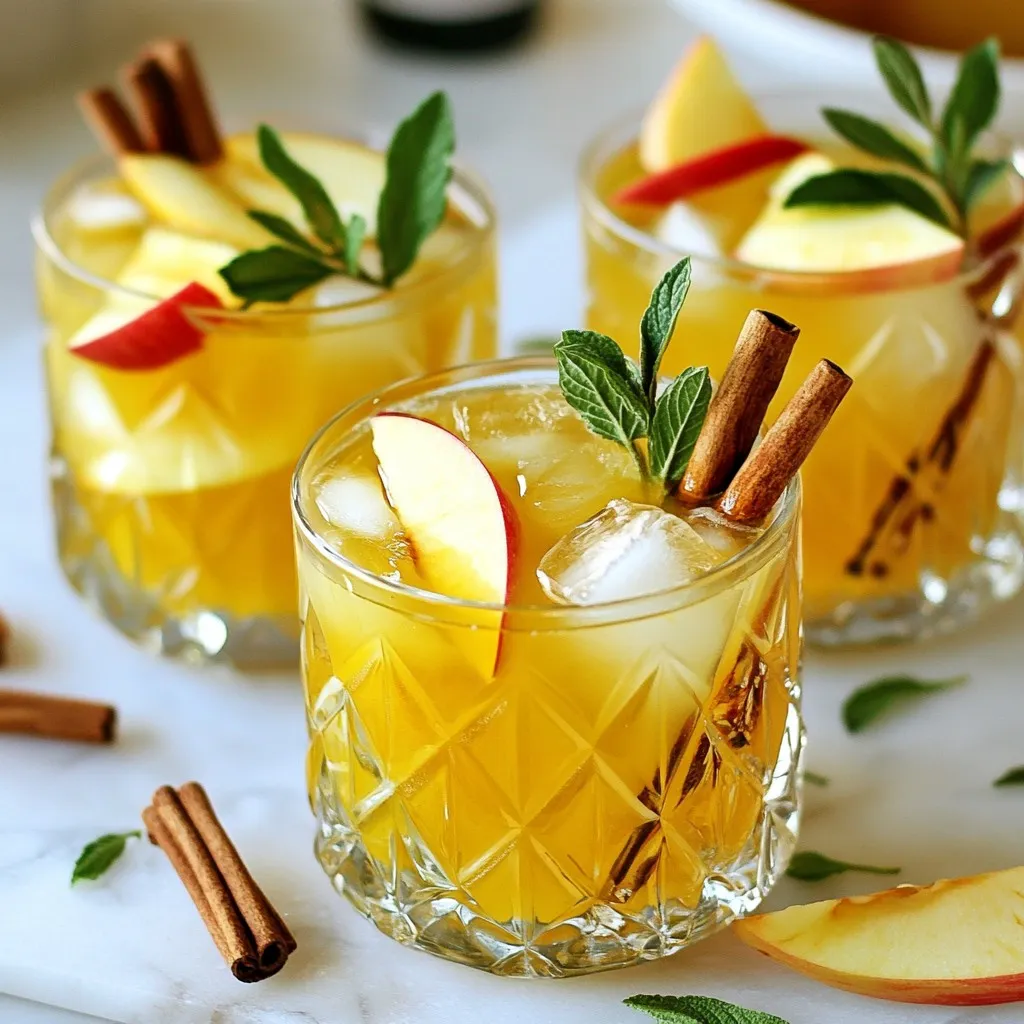 Serving your cocktail in clear glasses makes it shine! The golden color of the drink looks lovely. Add fresh apple slices on the rim for a pop of color. A cinnamon stick and mint leaves on top add a nice touch. These simple garnishes make your drink look fancy and inviting.