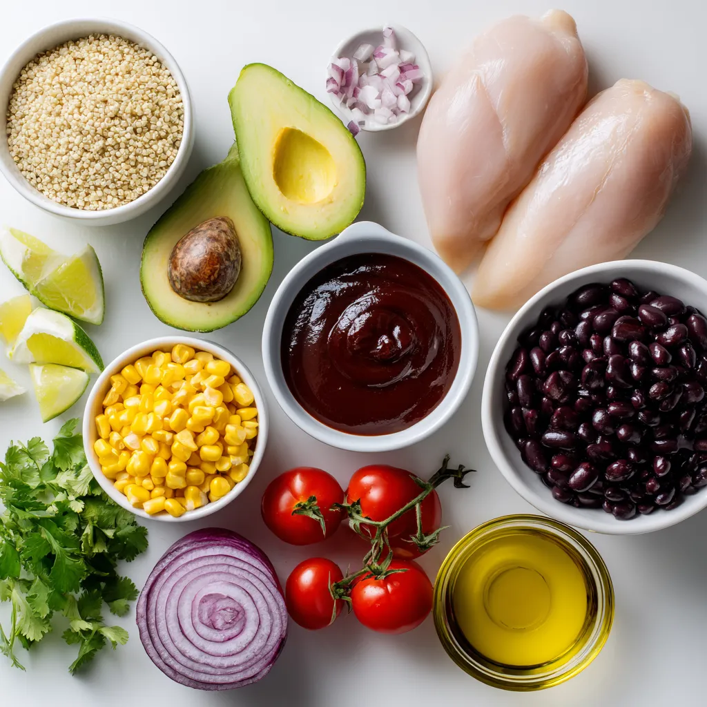 Main Ingredients for BBQ Chicken Quinoa Bowls