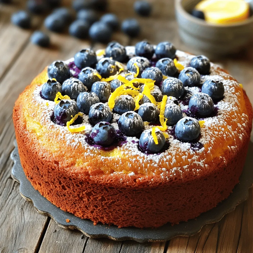After baking, let the cake cool in the pan for about 10 minutes. Then, move it to a wire rack to cool completely. Once cool, dust the top with powdered sugar. Add extra blueberries and a sprinkle of lemon zest for a pop of color.