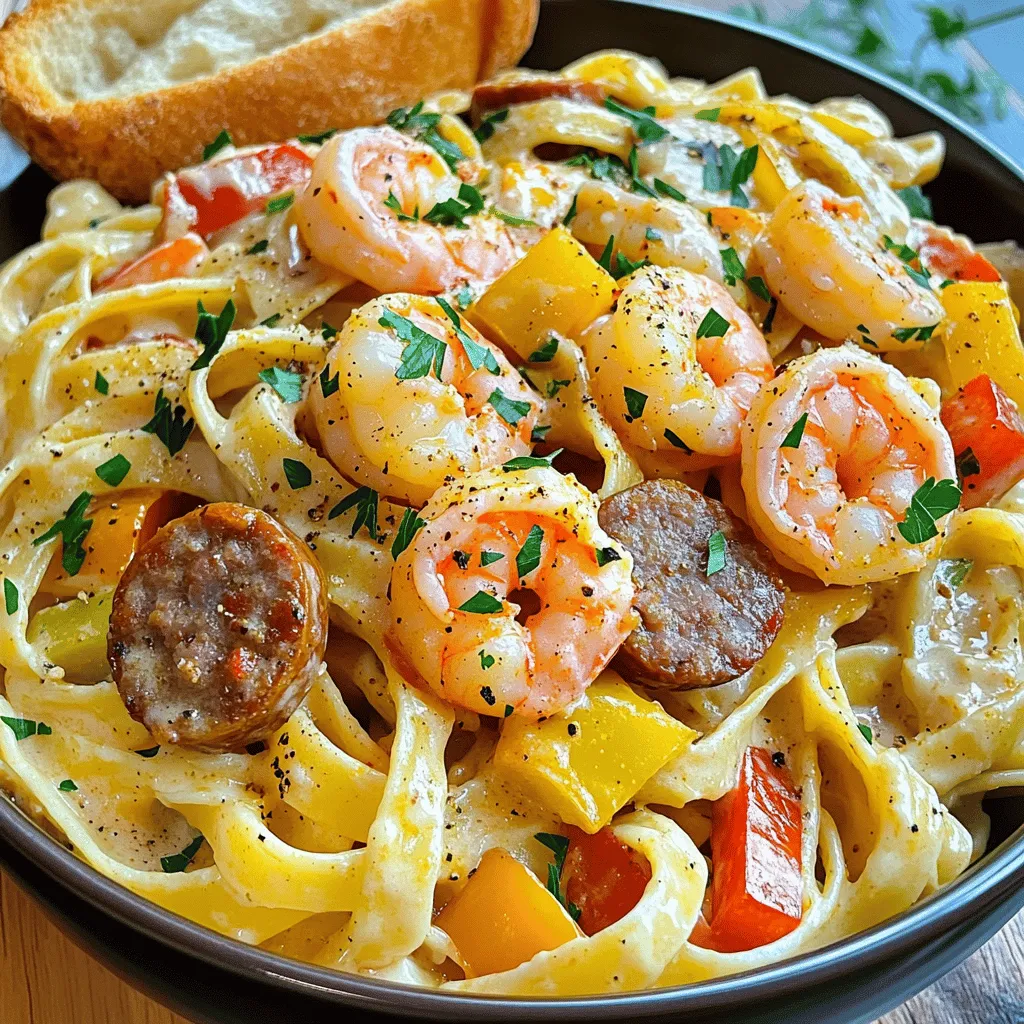 I love cooking with fresh ingredients. The large shrimp add a sweet touch. The sausage brings a smoky flavor that pairs well with the spices. Diced tomatoes add a nice acidity, making this dish bright and balanced. I often use heavy cream for a rich sauce that coats the pasta beautifully.