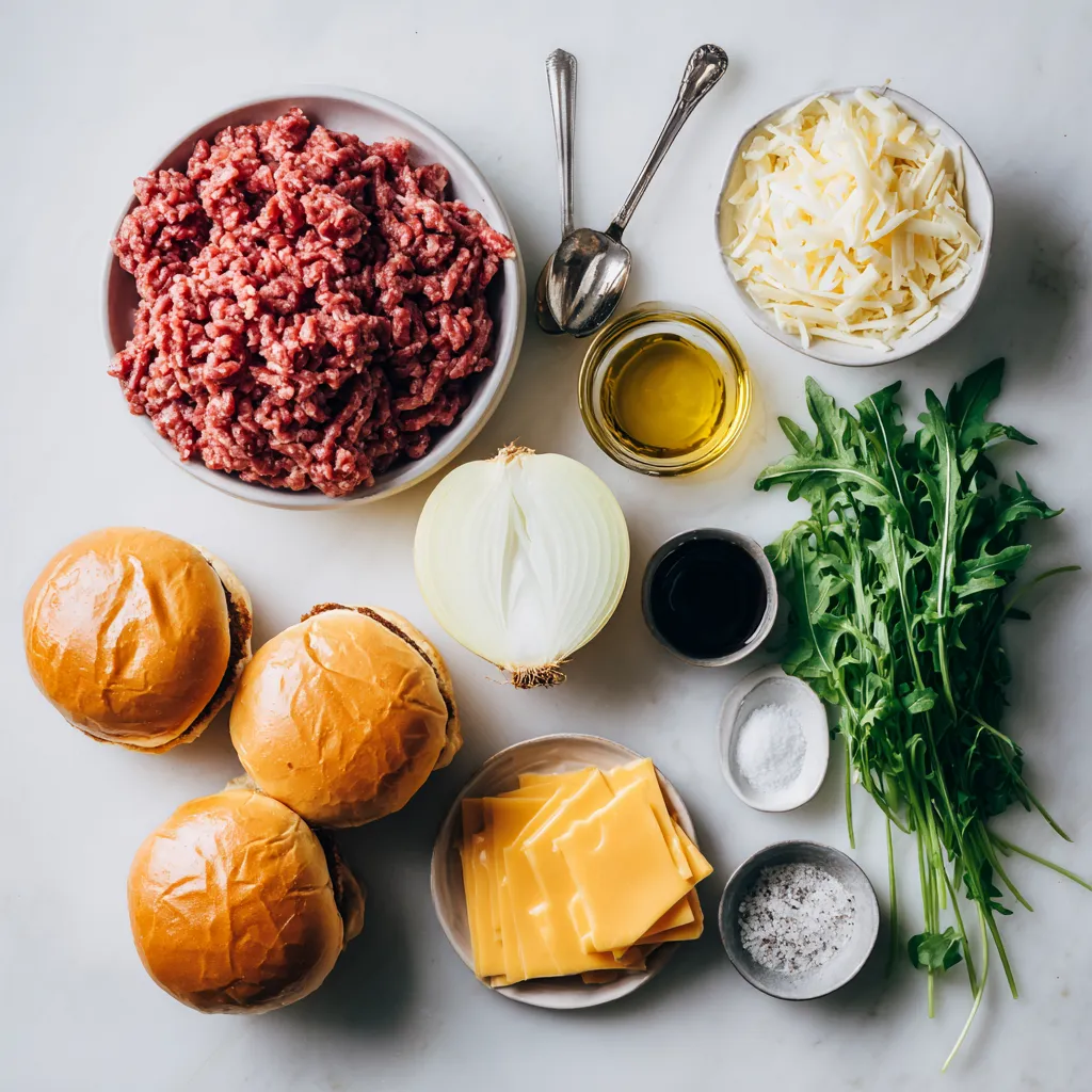 The main ingredients create a juicy slider with a sweet onion taste. I always choose 80/20 ground beef for the best flavor. A good onion, like a sweet yellow onion, works wonders in this recipe. Olive oil helps caramelize the onions just right.