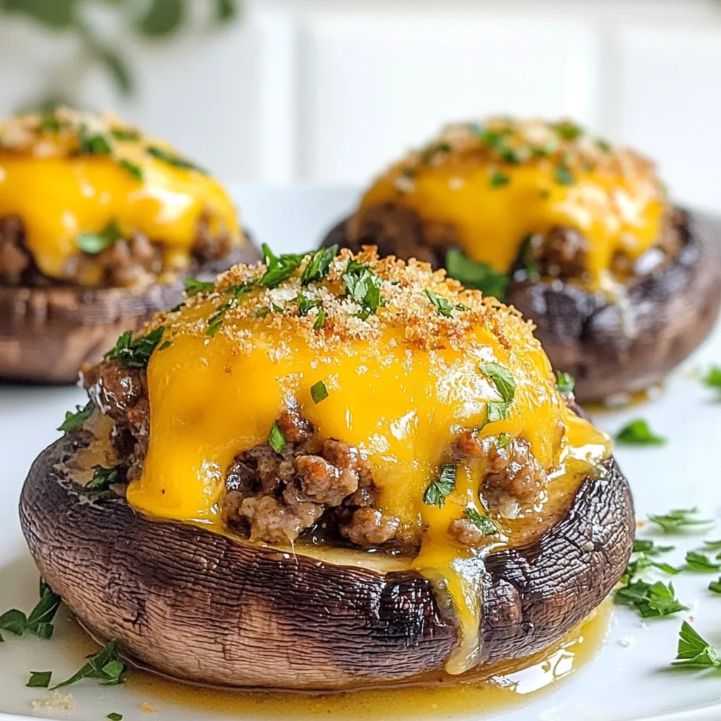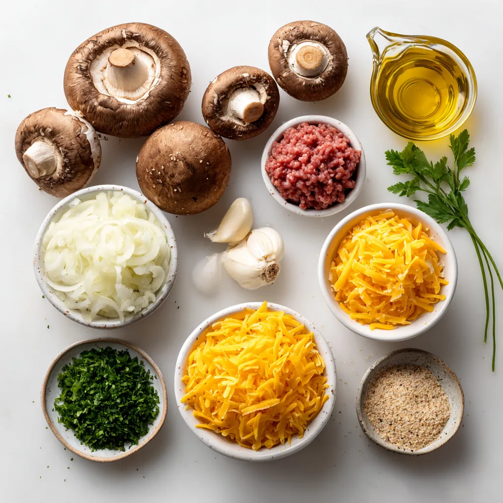 Gather these ingredients before you start. The mushrooms serve as the perfect base. They add flavor and hold the filling well. Ground beef gives a hearty taste. Onions and garlic bring a nice aroma. Worcestershire sauce adds a savory kick. Cheddar cheese melts beautifully, making the dish creamy. Breadcrumbs help bind the filling and add texture. Fresh parsley gives color and brightness. Lastly, salt and pepper are key for flavor.