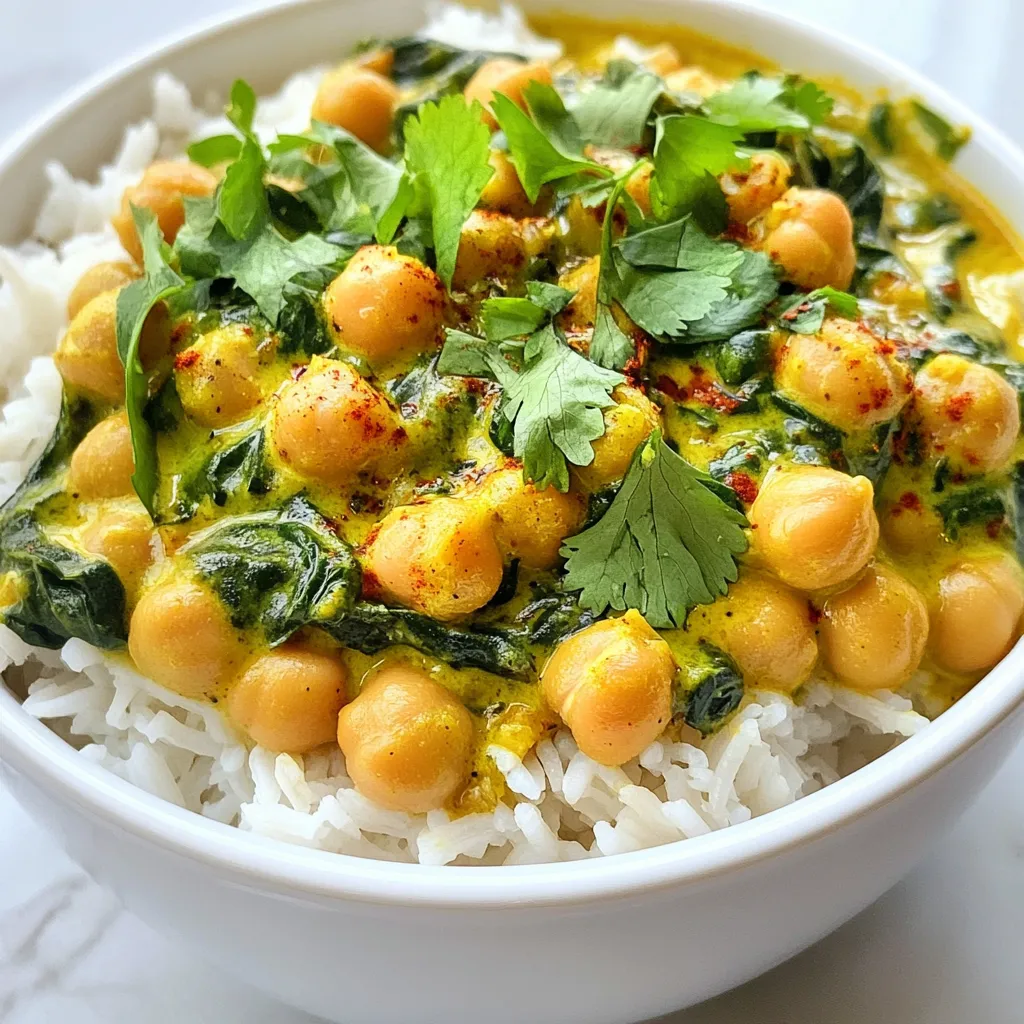 A delicious and healthy curry made with chickpeas and fresh spinach, perfect for a quick meal.