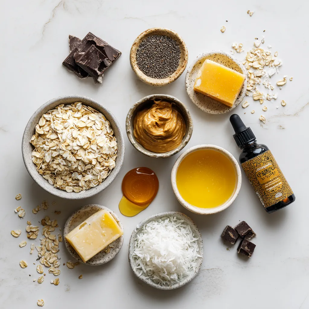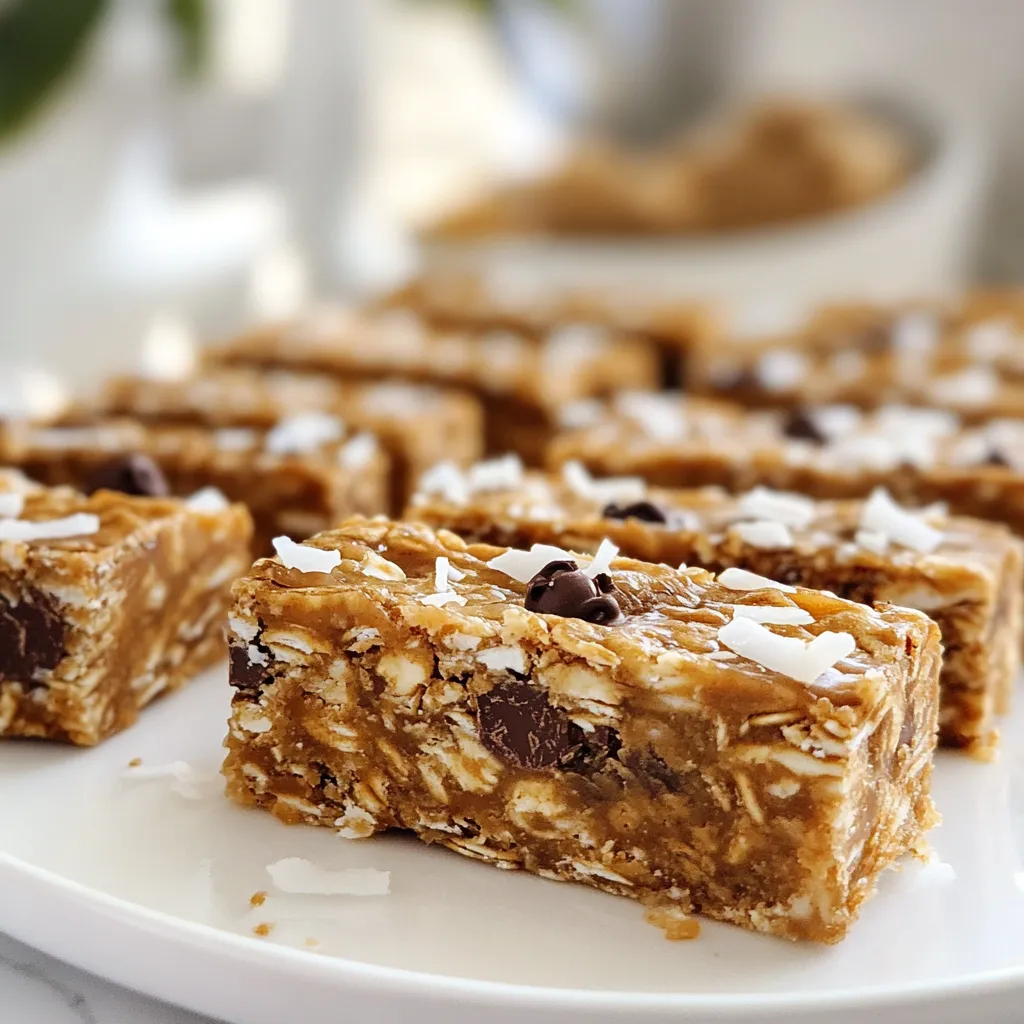 To make these tasty Chocolate Coconut Energy Bars, gather these simple ingredients. Each one adds flavor and nutrition to the bars. - 1 cup rolled oats - 1/2 cup unsweetened shredded coconut - 1/2 cup almond butter (or any nut butter of your choice) - 1/4 cup honey or maple syrup - 1/2 cup dark chocolate chips - 1/4 teaspoon sea salt - 1/2 teaspoon vanilla extract - 1 tablespoon chia seeds (optional for added nutrition) These ingredients work together to create a healthy snack. The rolled oats give a good base, while the shredded coconut adds a nice texture. Nut butter binds everything, and the sweetener gives a hint of sweetness. Dark chocolate chips add a rich flavor that makes these bars fun to eat. Sea salt balances the sweetness, and vanilla enhances the overall taste. If you want extra benefits, add chia seeds for more nutrition. {{ingredient_image_1}} 1. First, grab a large mixing bowl. Add 1 cup rolled oats, 1/2 cup unsweetened shredded coconut, and 1 tablespoon chia seeds if you want extra nutrition. Stir these dry ingredients together well. This mix gives the bars a chewy base. 2. Next, take a small saucepan. On low heat, melt 1/2 cup almond butter and 1/4 cup honey or maple syrup. Stir until smooth. Remove it from the heat and stir in 1/2 teaspoon vanilla extract. This mixture brings a sweet and nutty flavor to your bars. 3. Now, pour this melted mix over the dry ingredients in your bowl. Mix everything until it’s all coated evenly. Then, add 1/2 cup dark chocolate chips and 1/4 teaspoon sea salt. Make sure the chocolate is spread throughout the mix for tasty bites. 1. Line an 8x8 inch baking dish with parchment paper. Leave some paper hanging over the sides. This makes it easy to lift out the bars later. 2. Transfer your mixture into the baking dish. Use a spatula or your hands to press it down firmly. Make sure it’s even. This step helps the bars hold together well. 1. Place the dish in the fridge for at least 1 hour. This cooling time helps the bars set properly. 2. Once firm, lift the bars out of the dish using the parchment paper. Cut them into even squares or rectangles. Use a sharp knife to make clean cuts. Store your energy bars in an airtight container in the fridge. Enjoy them for a tasty and healthy snack! You can switch up the nut butter. Try peanut butter or cashew butter. Each nut butter gives a new taste. If you want less sugar, use mashed bananas instead of honey. Applesauce also works well as a sweetener. To stop your bars from crumbling, press the mixture down hard in the dish. If the bars are too dry, add a bit more honey or nut butter. Adjust the sweetness by tasting the mix before pressing it. Add a little more sweetener if needed. These bars pair well with fresh fruits like bananas or berries. You can also serve them with yogurt for a tasty snack. They are great for meal prep. Just grab a bar when you need a quick bite! Pro Tips Use Fresh Ingredients: Always use fresh, high-quality ingredients for the best flavor and texture in your energy bars. Customize Your Nuts: Feel free to swap almond butter with any nut or seed butter of your choice to suit your taste preferences or dietary needs. Experiment with Add-ins: Consider adding nuts, seeds, or dried fruits to enhance the nutritional value and add different textures to your bars. Proper Storage: Keep your energy bars in an airtight container in the refrigerator to maintain freshness and avoid spoilage. {{image_2}} You can enhance your energy bars with different flavors. Add nuts or seeds like almonds or sunflower seeds. They add crunch and protein. You can also mix in dried fruits like raisins or cranberries. These fruits add natural sweetness and chewiness. Choosing the right chocolate can change the taste. Milk chocolate gives a sweet, creamy flavor. Dark chocolate is richer and less sweet. You can also coat the bars in melted chocolate for a tasty finish. This adds a layer of chocolate that makes them even more delicious. If you follow a vegan diet, use maple syrup instead of honey. You can also choose a nut butter that is vegan-friendly, like almond or cashew butter. For gluten-free options, make sure your oats are certified gluten-free. This way, everyone can enjoy these tasty energy bars. To keep your Chocolate Coconut Energy Bars fresh, use airtight containers. These containers block air and moisture, which can spoil the bars. Store them in the fridge, where it is cool. This helps preserve flavor and texture. These bars last up to one week in the fridge. If you want to save them longer, freeze them. Wrap each bar tightly in plastic wrap. Then place them in a freezer-safe bag. They can last up to three months in the freezer. Check for changes in smell or texture. If the bars smell off or feel sticky, they may be bad. Look for mold spots or an unusual color. If you see any, it’s best to throw them away. You can make these energy bars without nut butter by using mashed bananas or unsweetened applesauce. These options will add moisture and a bit of sweetness. Simply replace the nut butter with the same amount of either mashed banana or applesauce. Mix it well with the honey or maple syrup until smooth. Then, follow the rest of the recipe as usual. This makes the bars nut-free and still delicious! No, you should not use coconut flour instead of shredded coconut. Coconut flour absorbs a lot of moisture and will change the texture. Shredded coconut gives a nice chew and adds flavor. If you want to use coconut flour, reduce the amount of other dry ingredients to keep the right balance. However, I recommend sticking with shredded coconut for the best results. Yes, these energy bars are great for kids! They are full of healthy ingredients like oats and dark chocolate. I find that kids love the sweet taste and chewy texture. You can also adjust the sweetness by using less honey or maple syrup if needed. They make a perfect snack for school or after playtime. Absolutely! You can customize these energy bar