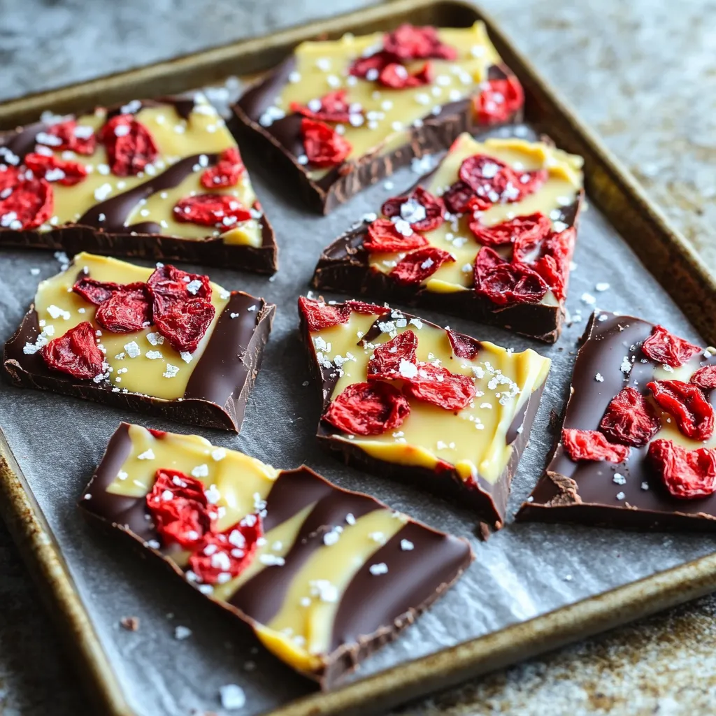 Sprinkling sea salt on top of your bark makes it taste amazing! The salt balances the sweetness of the chocolate. Use a light hand to sprinkle it over the bark before chilling. This simple step creates a delightful contrast. The salt enhances the chocolate flavors, making every bite special.