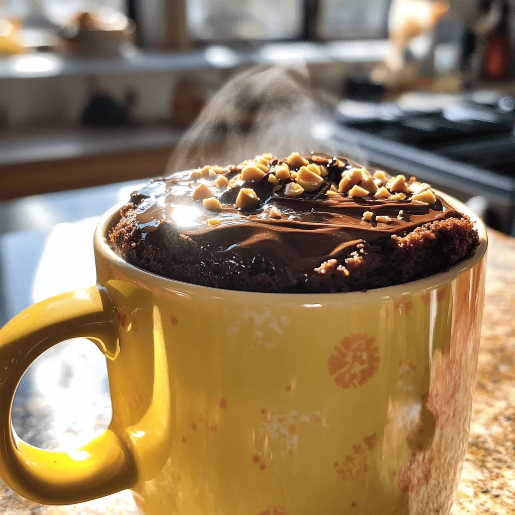 Enjoy the mug cake right after it cooks. The warm cake melts the chocolate hazelnut spread. The gooey texture makes each bite a treat. Use a spoon to savor every last bit. It tastes best fresh, warm from the microwave.