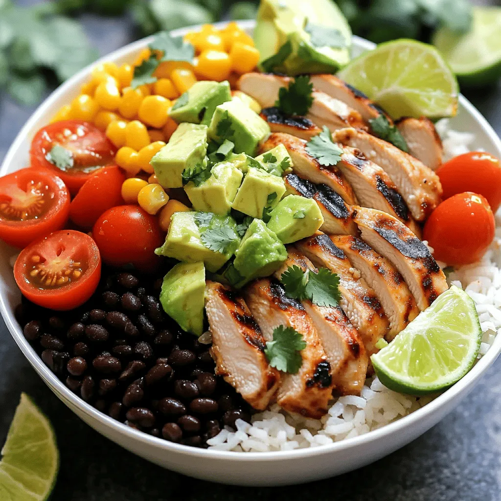 – Creating a colorful bowl: Make your burrito bowl look fun and inviting. Arrange the rice, beans, corn, and chicken in sections. Add vibrant cherry tomatoes and green avocado. A colorful bowl makes the meal more exciting.