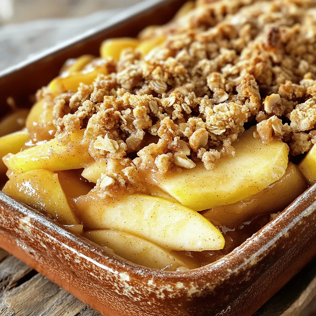Preheat your oven to 350°F (175°C) while you prepare. Once your apple mixture and oat topping are ready, spread the topping evenly over the apples in the baking dish. Bake for 30-35 minutes. Look for a golden brown top and bubbly apples. Once done, let it cool for a few minutes. It tastes amazing warm! For a special treat, serve with a scoop of vanilla ice cream and a sprinkle of cinnamon on top. Enjoy!