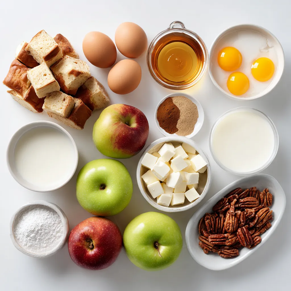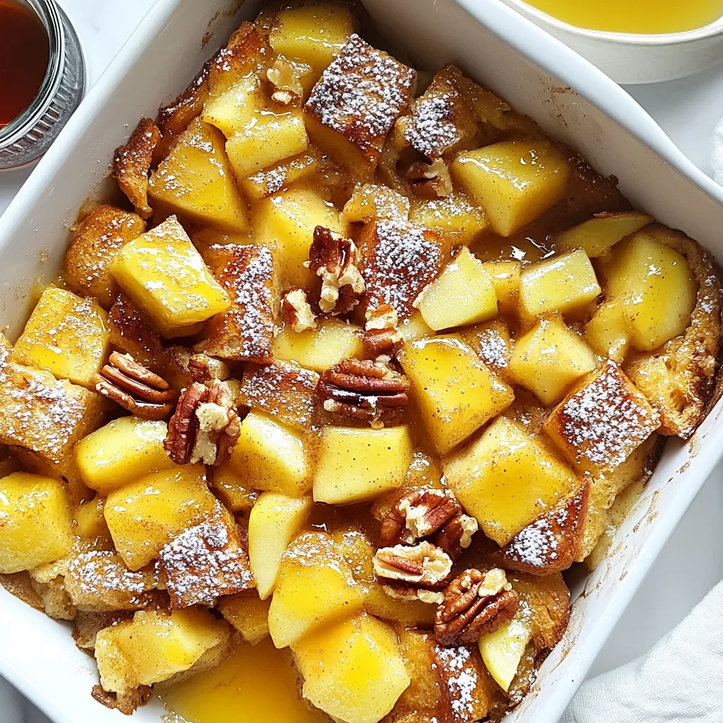 A delicious baked dish combining cinnamon, apples, and bread, perfect for breakfast or brunch.