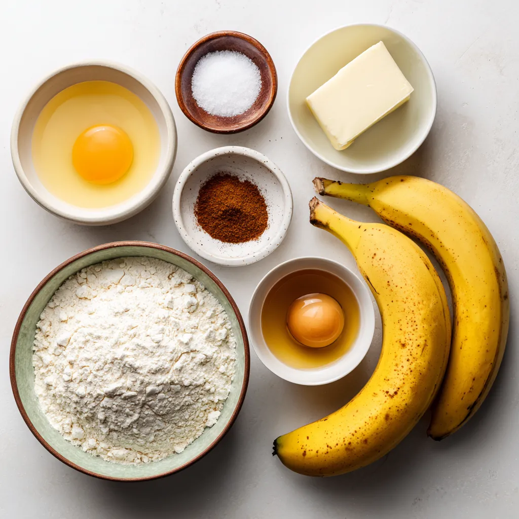 You can switch some items if you wish. For bananas, use 2 large bananas or 4 small ones. Instead of butter, try coconut oil or vegetable oil. If you want less sugar, use 1/2 cup of honey or maple syrup. You can also replace all-purpose flour with whole wheat flour for a healthier option. If you want a nutty crunch, add chopped nuts or chocolate chips.