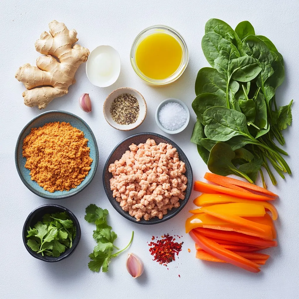 To begin, gather your ingredients in a large mixing bowl. Combine 1 pound of ground chicken or turkey, 1/2 cup of breadcrumbs, and 1/4 cup of chopped cilantro. Add 1 tablespoon of minced ginger, 2 minced garlic cloves, and 1 lightly beaten egg. Season with 1 teaspoon of salt, 1 teaspoon of black pepper, and 1 tablespoon of curry powder.