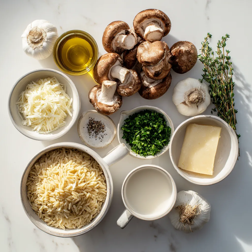 A rich and creamy orzo dish with mushrooms, perfect for a comforting meal.