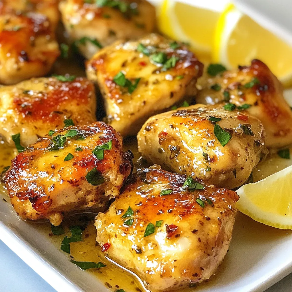 The butter and garlic create a rich sauce that coats the chicken. Fresh parsley adds color and brightness. Lastly, lemon wedges give a zesty kick when served.