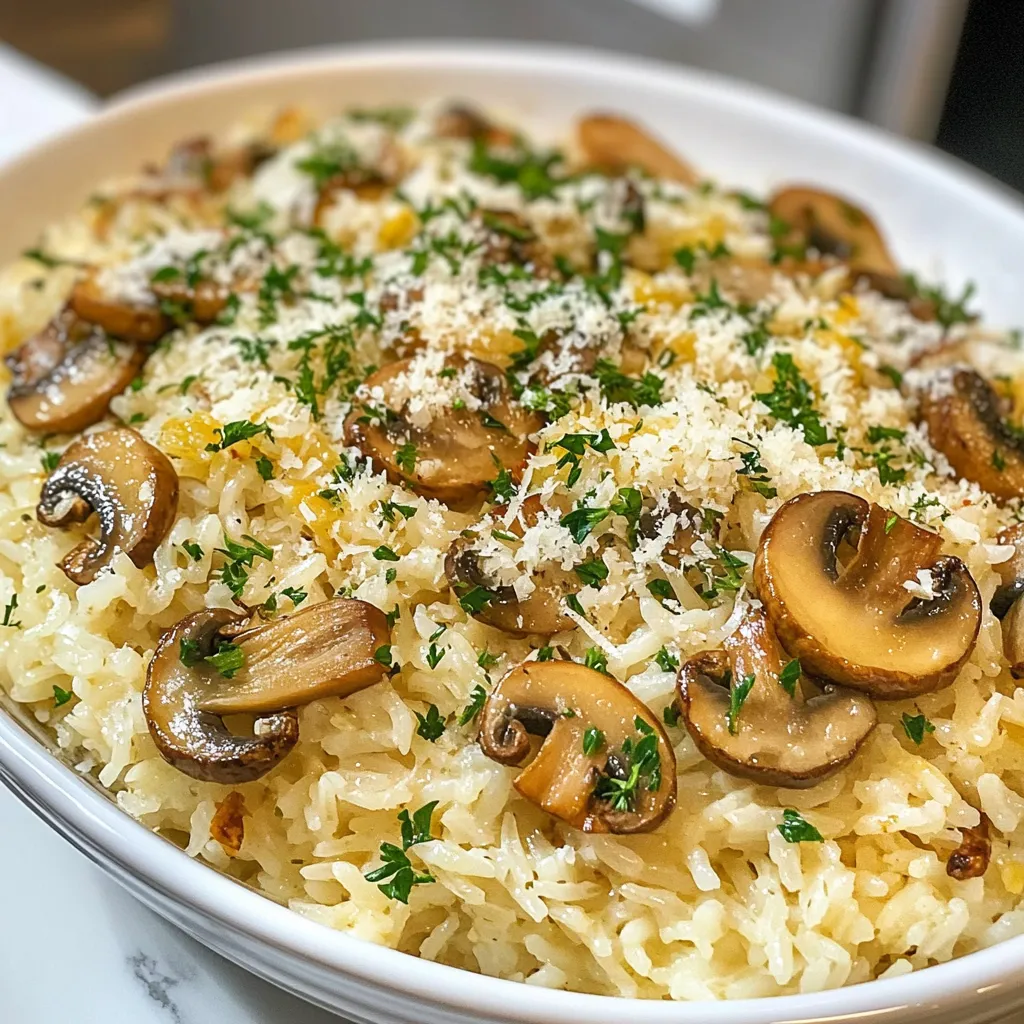 A flavorful rice dish cooked with garlic, butter, and mushrooms, perfect as a side or main course.