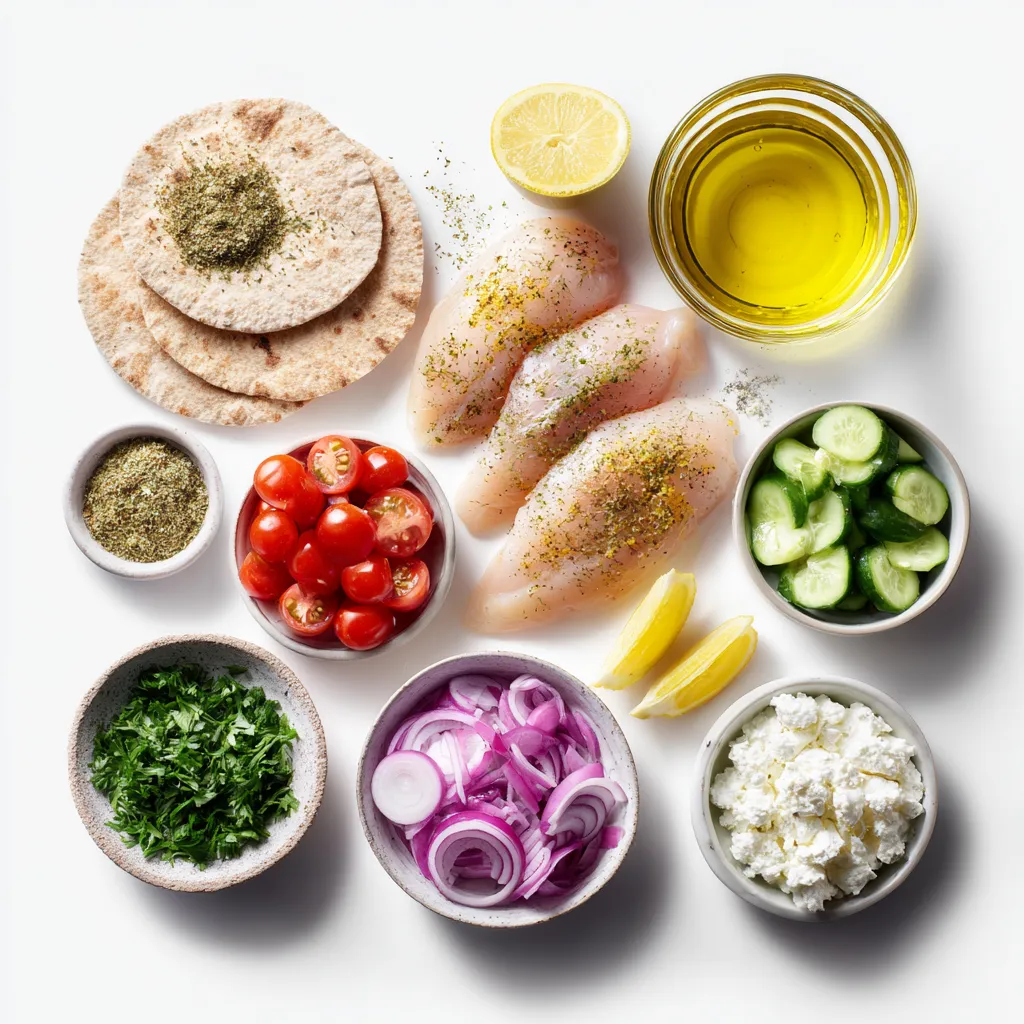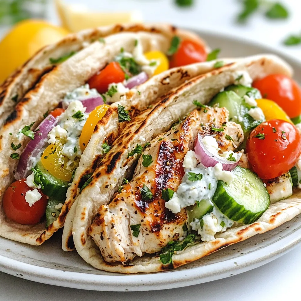 The main ingredients in this recipe are simple yet full of flavor. Chicken breasts are lean and easy to cook. Whole wheat pitas add a healthy touch. Greek yogurt serves as a creamy base. The lemon juice adds brightness, while feta cheese gives a nice salty kick.