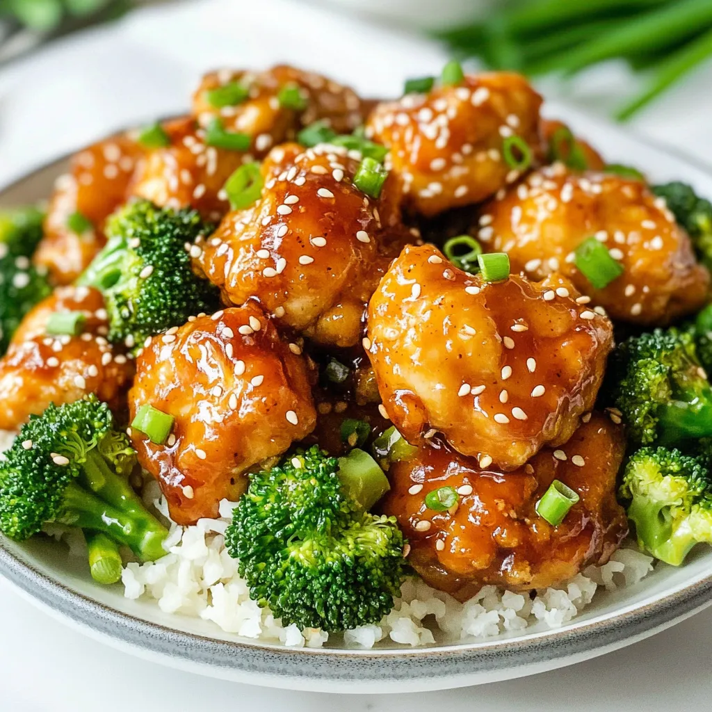 - 1 lb boneless, skinless chicken thighs, cut into bite-sized pieces - 2 cups broccoli florets - Marinade components: - 1/4 cup honey - 4 cloves garlic, minced - 2 tablespoons low sodium soy sauce - 1 tablespoon apple cider vinegar - 1 teaspoon grated fresh ginger - Salt and pepper to taste Chicken thighs bring a juicy texture to this dish. They cook evenly and soak up flavors well. Broccoli florets add color and crunch. The marinade blends sweet and savory notes, making it special. - Sesame seeds - Chopped green onions Garnishes enhance the look and taste. Sesame seeds provide a nutty crunch. Chopped green onions add a fresh bite. They make the dish more appealing and tasty. - 2 tablespoons olive oil Olive oil is key for cooking the chicken. It adds richness and helps achieve a nice browning. The low sodium soy sauce keeps the dish flavorful without too much salt. Apple cider vinegar balances the sweetness of honey. It adds a lovely tang to the meal. {{ingredient_image_1}} To start, grab a bowl and mix the marinade. Combine honey, minced garlic, soy sauce, apple cider vinegar, and grated ginger. Add a pinch of salt and pepper for taste. Once mixed, add the chicken pieces. Toss them until they are well coated. Cover the bowl and let it chill in the fridge. Marinate for at least 30 minutes for the best flavor. A longer marination will deepen the taste. While the chicken marinates, prepare your broccoli. Fill a pot with salted water and bring it to a boil. Once boiling, add the broccoli florets. Blanch them for 2 to 3 minutes. You want them bright green and slightly tender. Watch the time closely. If you overcook, they will lose their crunch. After blanching, drain the broccoli and set it aside. Now, let’s cook the chicken. Heat olive oil in a large skillet over medium-high heat. Remove the chicken from the marinade but save that marinade for later. Add the chicken to the hot skillet. Cook for about 5 to 7 minutes. Stir occasionally, making sure the chicken browns nicely. The chicken is done when it is no longer pink in the center. Once the chicken is cooked, it’s time to add the broccoli. Toss the blanched broccoli into the skillet and stir everything together. Pour the reserved marinade over the chicken and broccoli. Let it cook for an additional 3 to 4 minutes. This will thicken the sauce, making it delicious and sticky. Stir until everything is well coated. To make your honey garlic chicken even tastier, consider adding optional spices and herbs. - Ginger: Fresh ginger adds warmth and depth. - Red pepper flakes: For a hint of heat. - Cilantro: Fresh cilantro brightens the dish. You can also try different marinades. Mix honey with orange juice for a fruity twist, or use balsamic vinegar for a richer flavor. When cooking in a skillet, keep a few best practices in mind. - Heat: Start with medium-high heat to brown the chicken well. - Stirring: Stir the chicken often to cook evenly. To avoid overcooking chicken and broccoli, watch the time closely. Cook the chicken for 5-7 minutes, until it’s no longer pink. Blanch the broccoli for just 2-3 minutes; it should stay bright green and crisp. Pair your honey garlic chicken and broccoli with rice or noodles. - Rice: White or brown rice soaks up the sauce nicely. - Noodles: Stir-fried noodles add a fun twist. For a beautiful presentation, garnish with sesame seeds and chopped green onions. This adds color and extra texture to your dish. Pro Tips Marination Magic: Allow the chicken to marinate for at least 1 hour for deeper flavor. Overnight is even better! Browning the Chicken: Ensure the skillet is hot before adding the chicken to achieve a nice caramelization. Perfectly Blanched Broccoli: Blanch the broccoli until just tender to maintain its vibrant color and crunch. Thickening the Sauce: If you prefer a thicker sauce, mix 1 teaspoon of cornstarch with water and add it to the skillet during the final cooking stage. {{image_2}} You can easily switch chicken thighs for chicken breast. Chicken breast has less fat and cooks quickly. If you want shrimp, it works great too. Just reduce cooking time to about 3-4 minutes. For a vegetarian twist, use tofu. Tofu soaks up flavors well. Choose firm tofu for better texture. Cut it into cubes, then marinate and cook just like chicken. Feel free to add bell peppers for a sweet crunch. Slice them thinly and toss them in with the broccoli. Snap peas are another great choice. They add a nice snap and bright color. You can also customize with other greens. Spinach or kale works well. Just add them at the end for a quick wilt. Want more kick? Add chili flakes to the sauce. Start with a pinch and adjust to taste. You can also play with sweeteners. Use maple syrup instead of honey for a unique flavor. Brown sugar adds a deep sweetness too. Each change gives a new twist to the dish. To store your honey garlic chicken and broccoli, use airtight containers. Glass or plastic containers work well. Make sure to let the dish cool before sealing. This helps keep moisture in and prevents sogginess. You can refrigerate your leftovers for up to four days. If you want to keep them longer, freezing is your best bet. Just label your containers with the date so you know when to use them. For reheating, the stovetop is the best method. Heat a skillet over medium heat and add a splash of water or broth. This helps keep the chicken moist. Stir gently until everything is warm. You can also use a microwave. Place the food in a microwave-safe dish, cover it, and heat for 1-2 minutes. Stir halfway through to ensure even heating. This way, the flavors stay intact. In the fridge, honey garlic chicken and broccoli will last for about four days. In the freezer, it can stay good for up to three months. Look for signs of spoilage. If the chicken smells off or the broccoli has a slimy texture, discard it. Always trust your senses when it comes to food safety. To marinate chicken, mix the marinade ingredients in a bowl. For this recipe, co