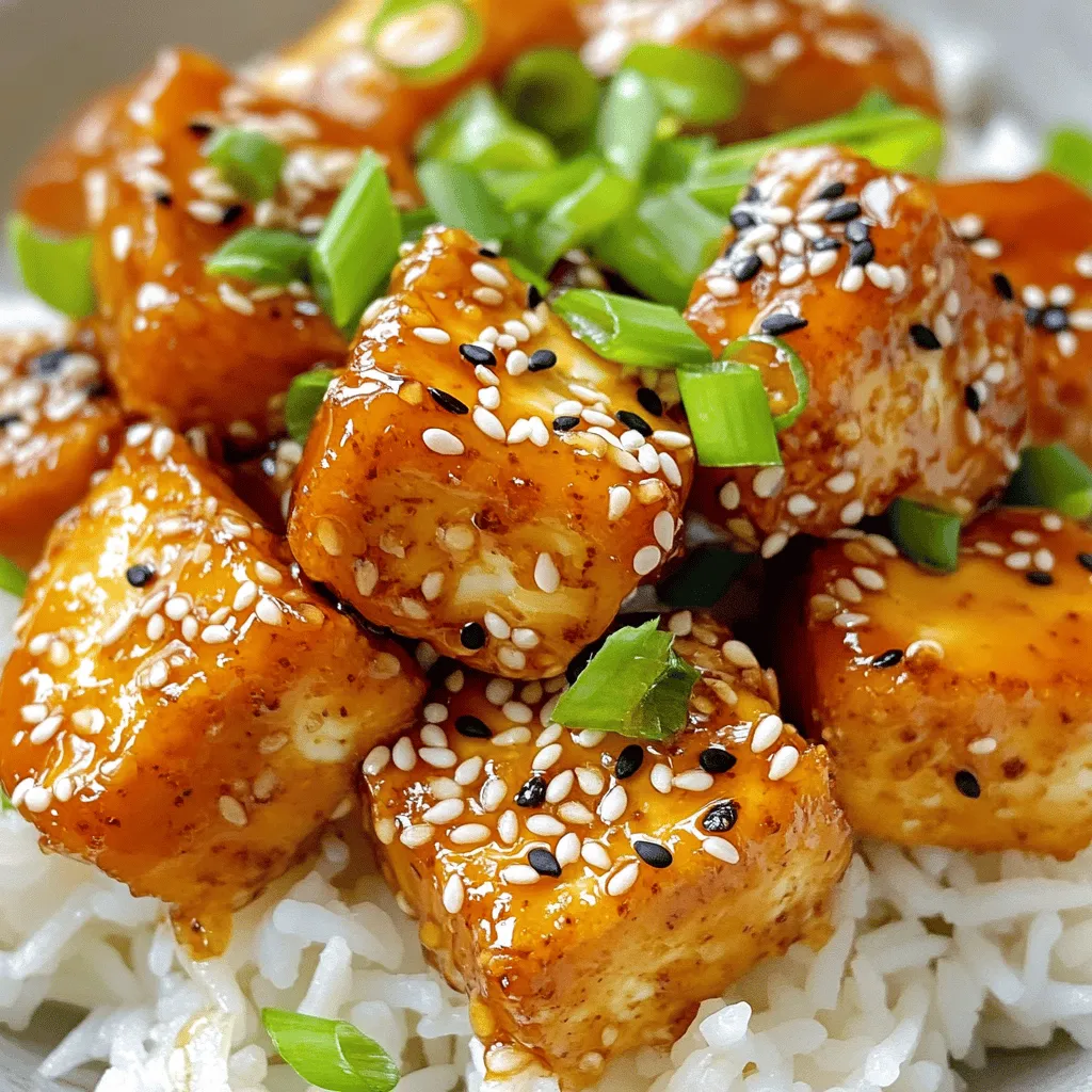 Try serving this tofu over zoodles or cauliflower rice. Zoodles are fun and add a fresh twist. They soak up all the yummy sauce. Cauliflower rice gives you a low-carb option. It also pairs well with the honey garlic flavor.