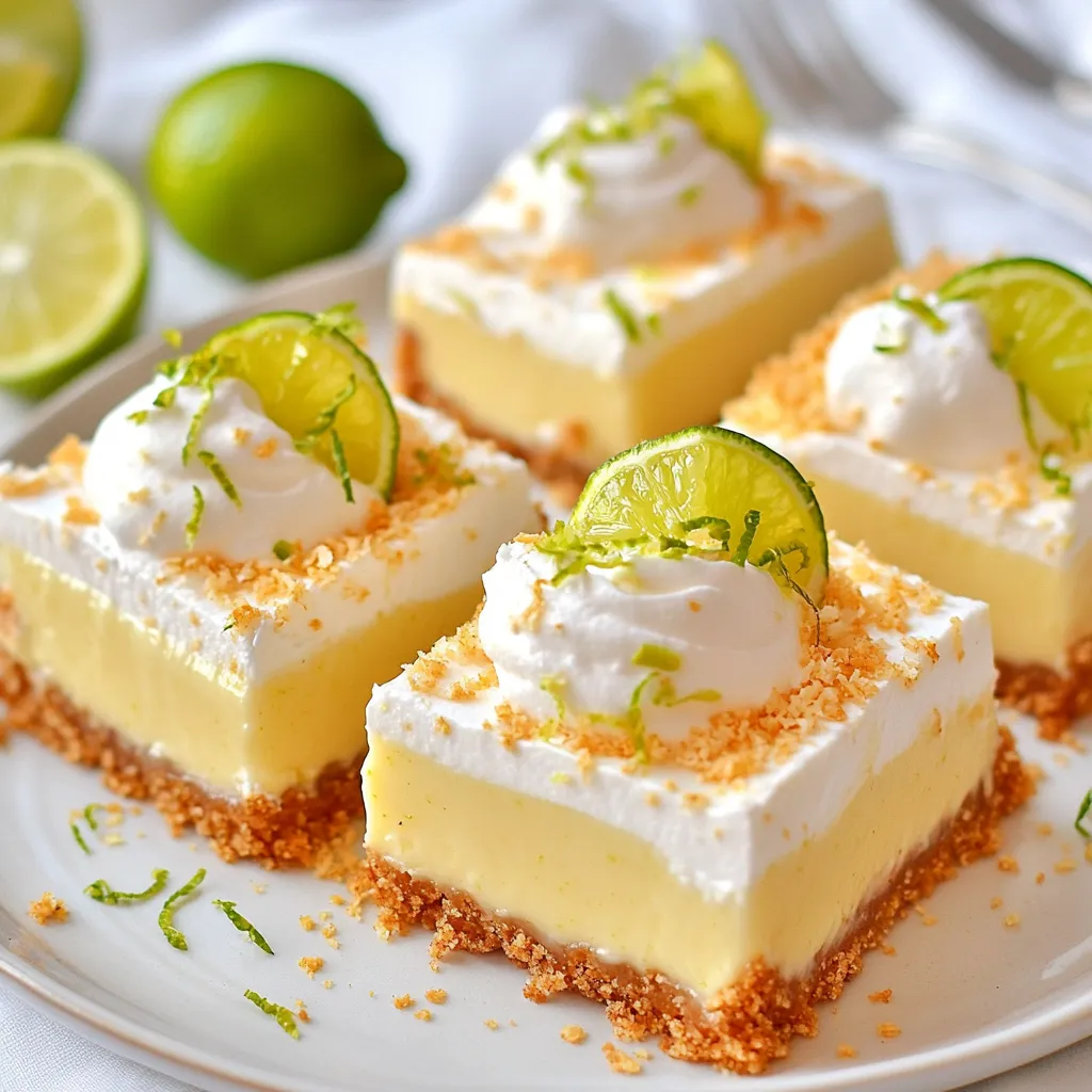 When serving, cut the bars into even squares. Top each square with whipped cream if you like. Garnish with lime slices and extra zest for flair. Serve them chilled for a refreshing treat. These bars make a great dessert for parties. They look and taste amazing!