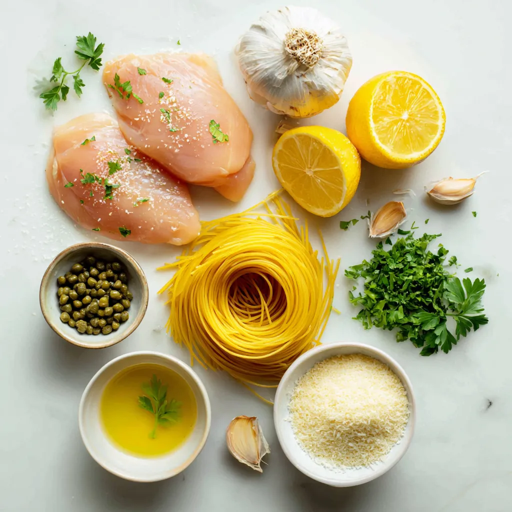 Main Ingredients for Lemon Caper Chicken Piccata Pasta