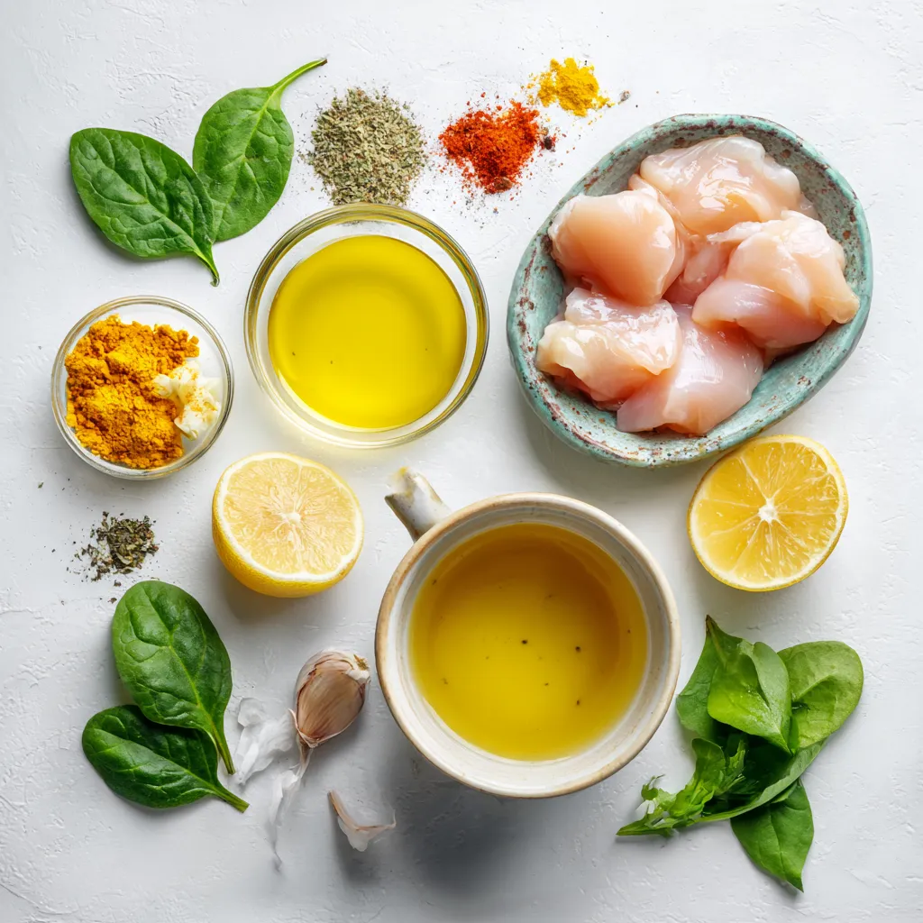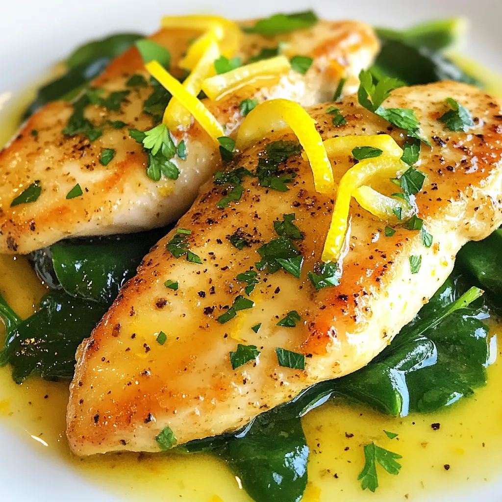 A flavorful chicken dish cooked in a lemon-garlic sauce with spinach.