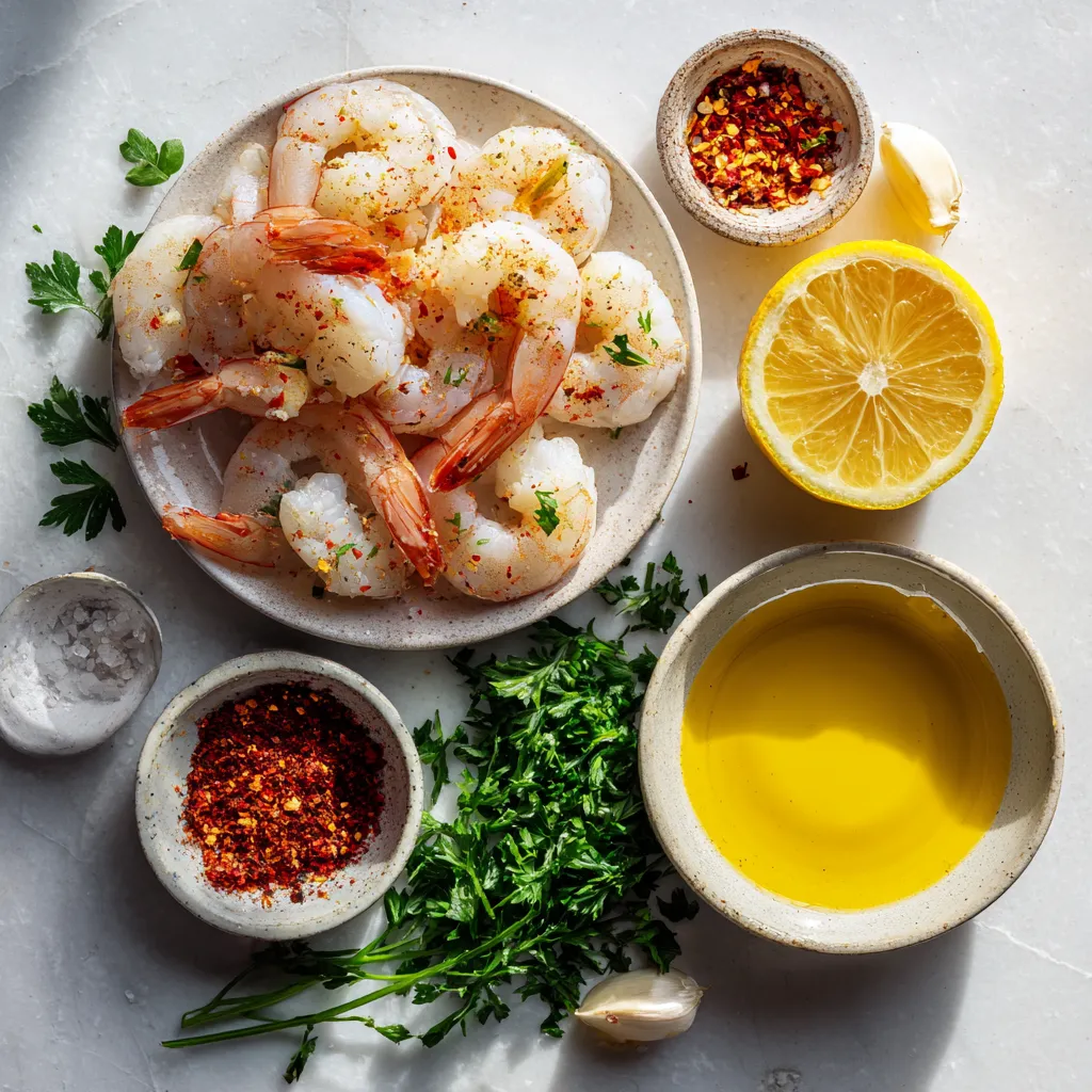 These main ingredients bring bright flavors to your shrimp. The garlic adds a nice punch. The lemon zest and juice give it a fresh and zesty taste. Olive oil keeps the shrimp moist and helps the spices stick.