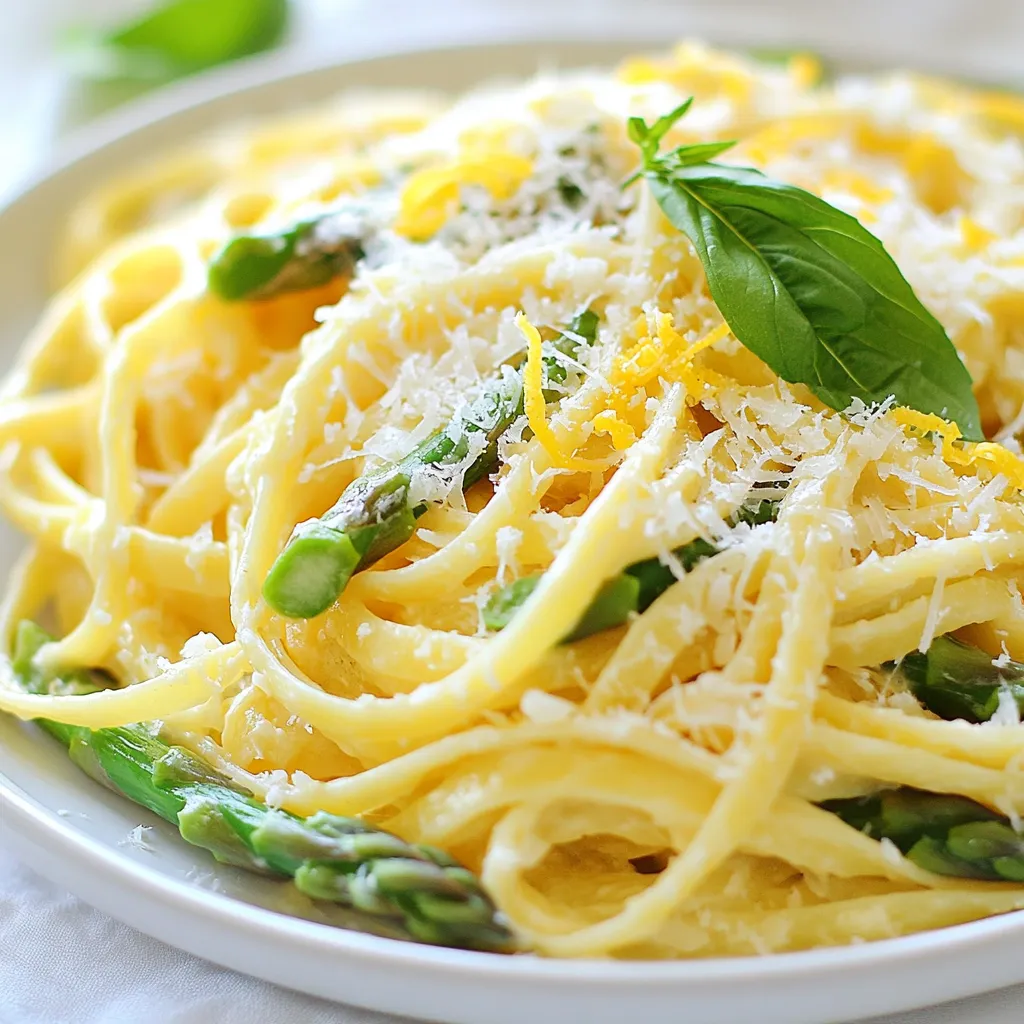 A light and flavorful pasta dish featuring fresh asparagus, lemon, and Parmesan cheese.