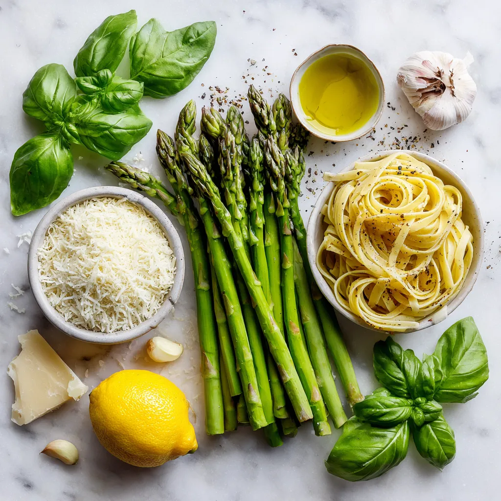 In this recipe, the main ingredients are simple and fresh. The pasta forms the base of the dish. I prefer fettuccine or tagliatelle for their width, which holds the sauce well. Fresh asparagus adds a nice crunch and bright flavor. Olive oil is key for sautéing and brings richness to the dish.