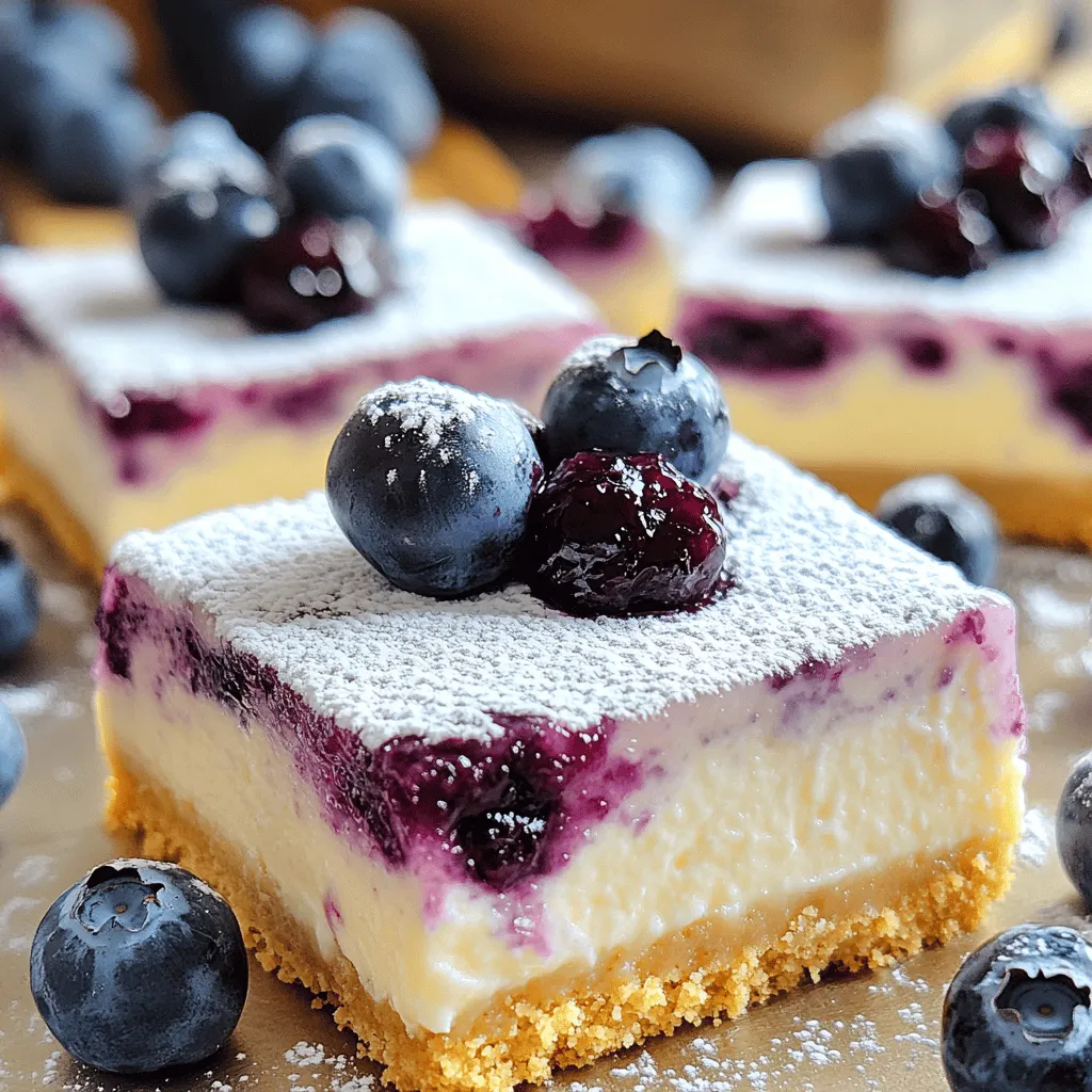For a pretty touch, top each square with fresh blueberries. You can also sprinkle some lemon zest for extra color and flavor. A drizzle of blueberry sauce can make it look fancy too.