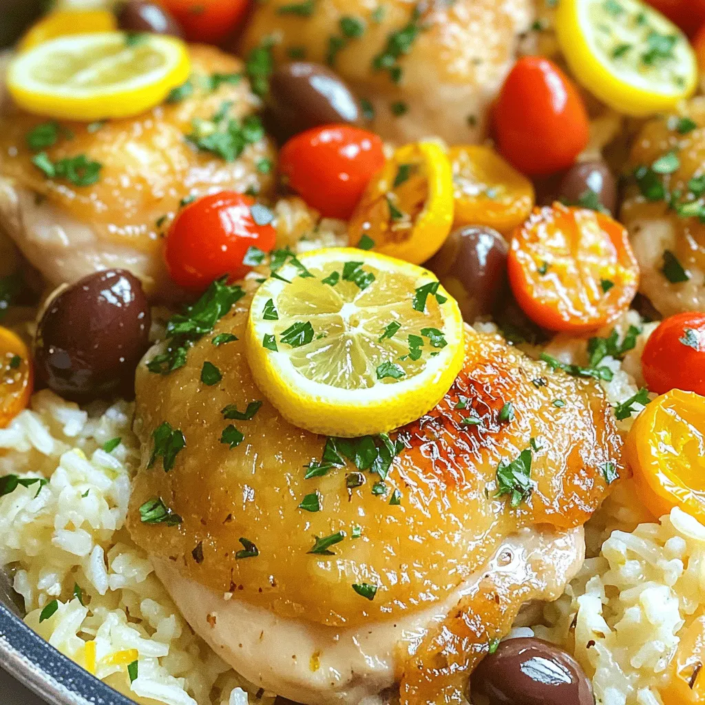 These ingredients create a bright, fresh flavor. The lemon juice and zest give the dish its signature zing. Chicken thighs stay juicy and tender, while the rice absorbs all the chicken broth goodness.