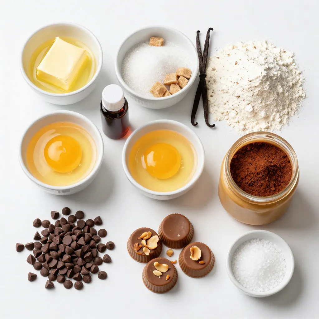 You can swap unsalted butter for coconut oil if you want a dairy-free option. For sugar, you might use coconut sugar instead of granulated sugar. If you need a gluten-free version, use gluten-free flour. You can also replace eggs with flax eggs (1 tablespoon ground flaxseed mixed with 2.5 tablespoons water per egg) for a vegan twist. Instead of mini peanut butter cups, try using chopped chocolate or other candy bars.