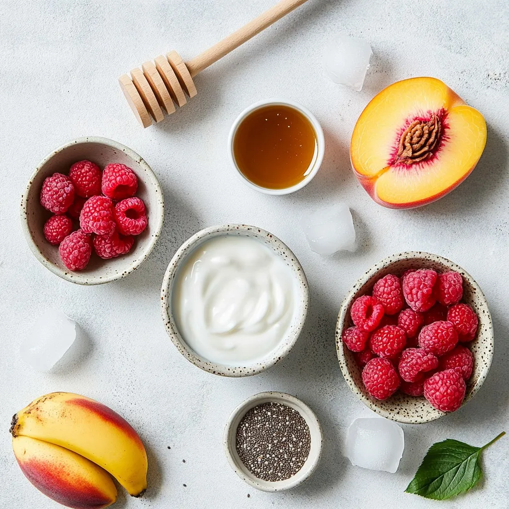 Choosing ripe fruits is key for a great smoothie. Look for peaches that are soft to the touch. They should smell sweet and fragrant. Raspberries should be bright in color and plump. Avoid any that are mushy or have dark spots.