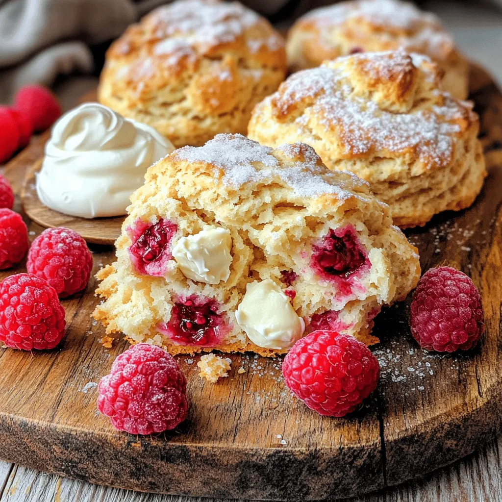 These ingredients work together to create soft, flavorful scones. The flour gives structure, while the sugar adds sweetness. Baking powder helps the scones rise, making them light and fluffy. Raspberries and white chocolate chips provide bursts of flavor.