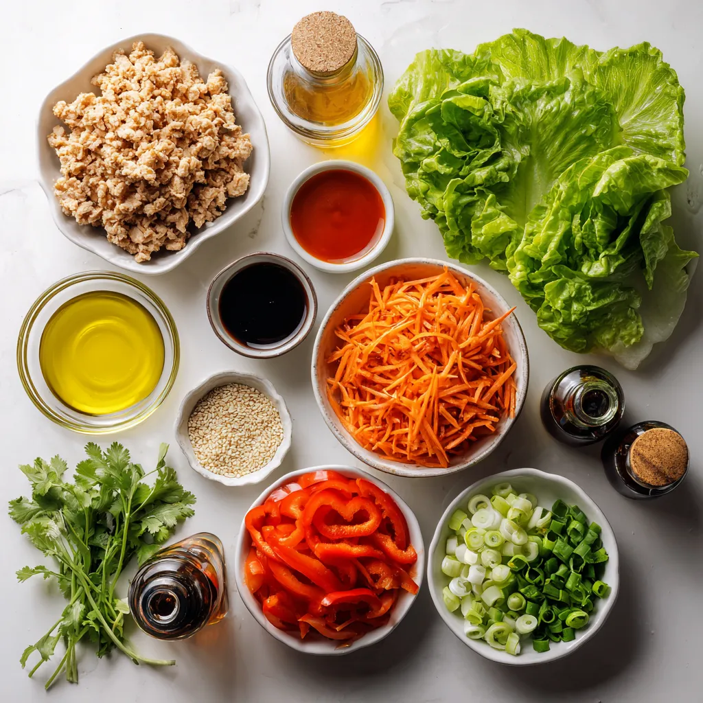 These ingredients form the base of your wraps. Ground chicken gives a juicy bite. The red bell pepper adds color and crunch. Shredded carrots bring sweetness and texture. Green onions offer a mild onion flavor, making each bite fresh.