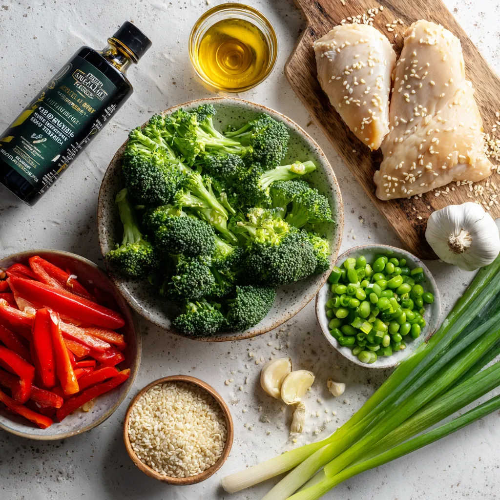 Sauces and Flavorings: You will use 3 tablespoons of low-sodium soy sauce and 1 tablespoon of rice vinegar. Add 2 tablespoons of sesame seeds, 3 cloves of minced garlic, and 1 tablespoon of grated fresh ginger for a punch of flavor.