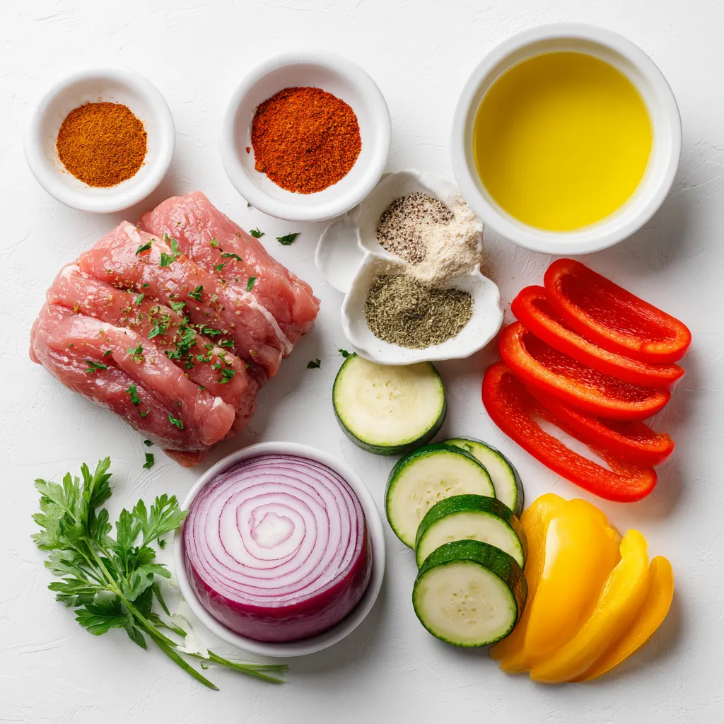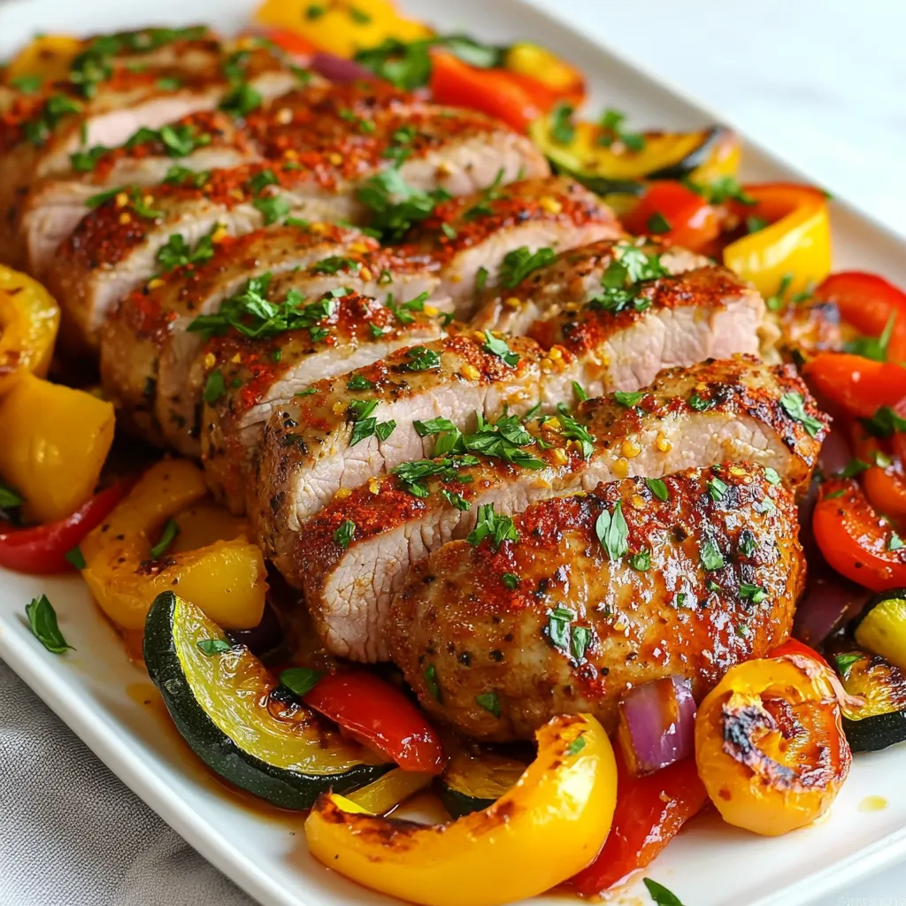 Here’s what you need for the Smoky Paprika Pork Tenderloin Sheet Pan: - 1 pound pork tenderloin - Seasoning mix: - 2 tablespoons smoked paprika - 1 teaspoon garlic powder - 1 teaspoon onion powder - 1 teaspoon cumin - 1 teaspoon salt - ½ teaspoon black pepper - 2 tablespoons olive oil - Assorted vegetables: - 1 red bell pepper, sliced - 1 yellow bell pepper, sliced - 1 red onion, sliced - 1 zucchini, sliced - Fresh parsley for garnish These ingredients come together to create a meal that is rich in flavor and easy to prepare. The pork tenderloin serves as a tasty main dish, while the veggies add color and nutrients. The smoked paprika brings a warm, smoky flavor that ties everything together. You can find these ingredients at your local grocery store. Just make sure the pork is fresh for the best taste. {{ingredient_image_1}} 1. Preheat the oven and prepare the baking sheet Start by preheating your oven to 425°F (220°C). This high heat helps the pork cook well and makes the veggies tender. Line a large baking sheet with parchment paper. This keeps things clean and makes for easy cleanup. 2. Mix the seasoning paste In a small bowl, combine 2 tablespoons of smoked paprika, 1 teaspoon of garlic powder, 1 teaspoon of onion powder, 1 teaspoon of cumin, 1 teaspoon of salt, and ½ teaspoon of black pepper. Pour in 2 tablespoons of olive oil. Stir well until you get a thick paste. This mix gives the pork a lovely smoky flavor. 3. Prepare the pork tenderloin Take 1 pound of pork tenderloin and pat it dry using paper towels. This step helps the seasoning stick better. Rub the spice paste all over the pork. Make sure every side is coated. This flavor will really shine through when cooked. 1. Arrange the vegetables on the baking sheet Slice 1 red bell pepper, 1 yellow bell pepper, 1 red onion, and 1 zucchini. Place these veggies around the pork on the baking sheet. They will soak up the tasty juices from the pork while roasting. 2. Place the pork tenderloin and roast Drizzle a little olive oil over the veggies and toss them gently to coat. Place the seasoned pork tenderloin right in the center of the veggies. Roast everything in the preheated oven for 25-30 minutes. Use a meat thermometer to check that the pork reaches 145°F (63°C). The vegetables should be soft and slightly browned. 1. Check for doneness and rest the pork Once the pork is done, take it out of the oven. Let it rest for 5-10 minutes before slicing. This helps the juices stay in the meat. 2. Slice and serve After resting, slice the pork tenderloin into even pieces. Serve it alongside the roasted vegetables. A sprinkle of fresh parsley on top adds a nice touch and color. Enjoy this delicious meal! - How to achieve a perfect seasoning coat Start with dry pork. Pat it with paper towels. This helps the spice paste stick better. Mix smoked paprika, garlic powder, onion powder, cumin, salt, and black pepper in a bowl. Add olive oil to form a paste. Rub this mix all over the pork. Make sure every part is covered. - Recommendations for side dishes Serve this dish with fluffy rice or creamy mashed potatoes. You can also add a simple green salad. Roasted sweet potatoes are another great choice. They add a nice sweetness that pairs well with the smoky pork. - Ensuring even cooking of the pork Use a meat thermometer to check the pork’s temperature. Aim for 145°F (63°C). This keeps the pork juicy. Place the pork in the center of the pan. This helps it cook evenly with the veggies. - Tips for caramelizing vegetables Cut the veggies into uniform pieces. This helps them cook evenly. Drizzle olive oil over them and toss well. Spread them out on the baking sheet. Avoid crowding them; this lets them brown nicely. - Best accompaniments for the dish Pair the pork with a light red wine, like Pinot Noir. The flavors blend well. You can also serve it with crusty bread. This helps soak up any juices. - How to garnish for presentation Before serving, sprinkle fresh parsley over the pork and veggies. This adds a pop of color. You can also drizzle a little olive oil for shine. It makes the dish look inviting and fresh. Pro Tips Rest the Meat: Allow the pork tenderloin to rest for 5-10 minutes after roasting. This helps the juices redistribute, resulting in a more tender and flavorful dish. Customize Your Veggies: Feel free to swap out or add other vegetables like asparagus, carrots, or potatoes based on your preference or seasonal availability. Spice Paste Variation: Experiment with different spices or herbs in the paste, such as chili powder or thyme, to create unique flavor profiles for the pork. Use a Meat Thermometer: To ensure perfectly cooked pork, use a meat thermometer to check that the internal temperature reaches 145°F (63°C) for safe consumption. {{image_2}} You can change the flavors of this dish easily. Try using different seasonings. If you want a spicy kick, add cayenne pepper or chili powder. For a fresh touch, use herbs like rosemary or thyme. You can also switch the smoked paprika for regular paprika if you prefer a milder taste. When it comes to vegetables, the options are endless. Instead of bell peppers, use asparagus or broccoli. Carrots or sweet potatoes add sweetness and color. Feel free to mix and match to find your favorite blend. If you prefer slow cooking, this dish adapts well. Just season the pork and place it in a slow cooker with the veggies. Cook on low for 6-8 hours. This method makes the pork super tender and juicy. Grilling is another fun way to make this dish. Marinate the pork with the spice mix, then grill it over medium heat. Add the veggies in a grill basket. This gives everything a nice smoky flavor and char. For gluten-free options, check your spice labels. Most spices are gluten-free, but some blends might contain gluten. Use fresh herbs and spices to avoid this. If you're watching carbs, you can skip the potatoes and use only non-starchy veggies. Zucchini, bell peppers, and onions are great low-carb choic