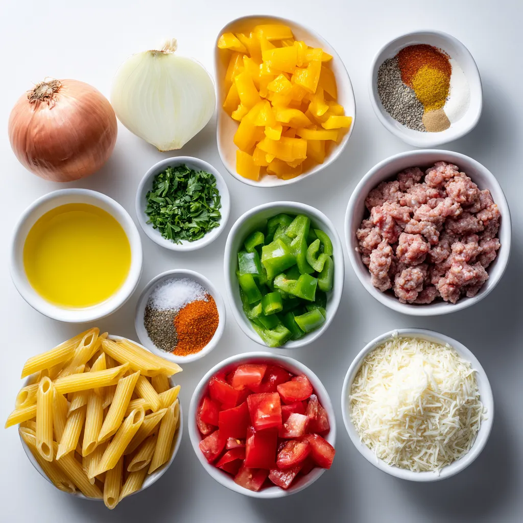 Main Ingredients for Spicy Cajun Sausage Pasta