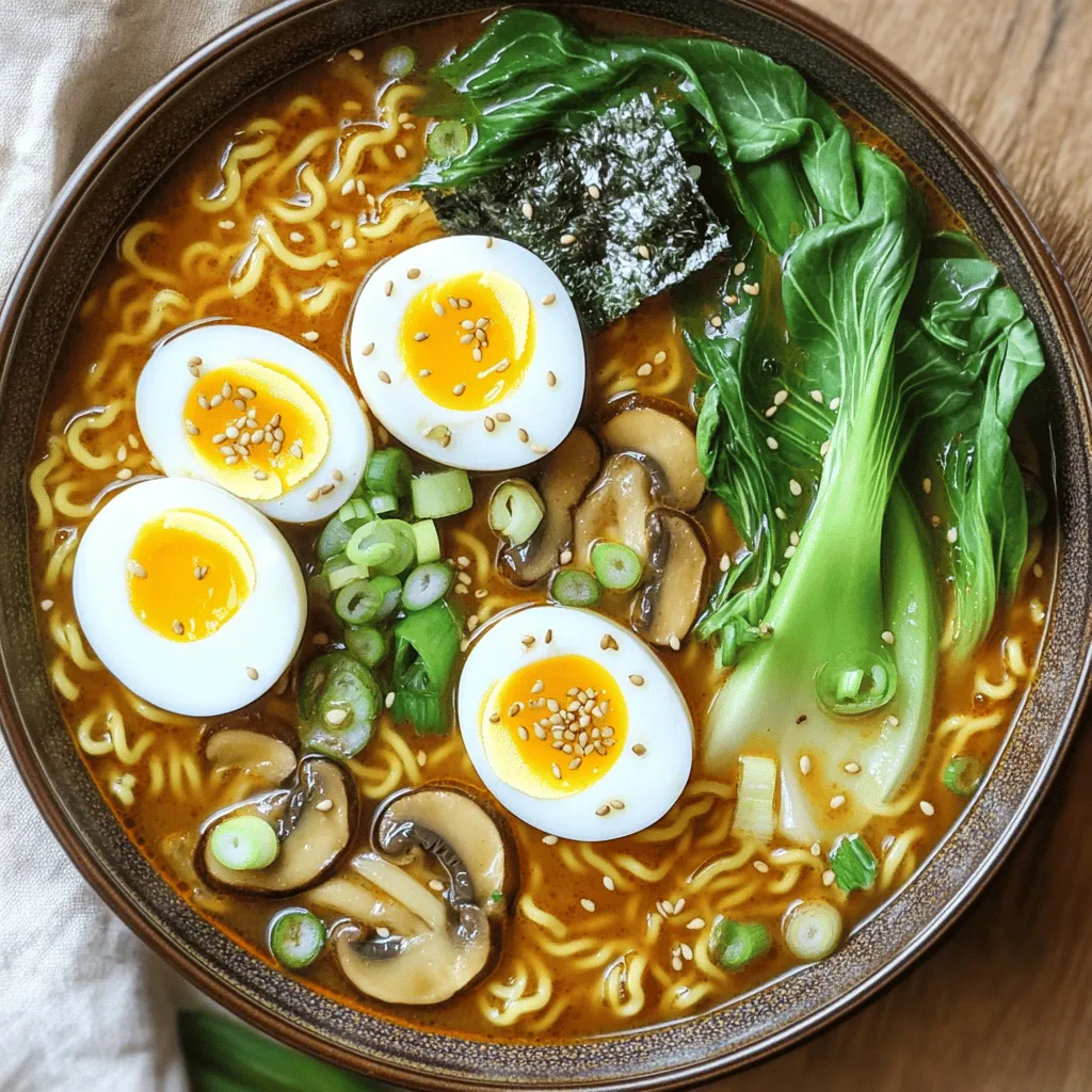 To make a vegetarian or vegan version of spicy miso ramen, you can simply swap out the chicken broth for a rich vegetable broth. Use the same amount of miso paste, soy sauce, and chili paste. You can still enjoy the umami flavors with shiitake mushrooms and bok choy. For protein, consider adding tofu or tempeh. They soak up the broth well and add a nice texture.