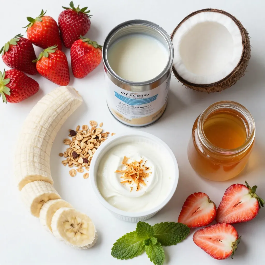 - 1 cup fresh strawberries, hulled and sliced - 1 frozen banana - ½ cup coconut milk (canned for creaminess) - ¼ cup Greek yogurt (or dairy-free alternative) - 1 tablespoon honey or agave syrup - ¼ cup granola (for topping) - 2 tablespoons shredded coconut (toasted for extra flavor) - Fresh mint leaves (for garnish) - Extra sliced strawberries (for garnish) To create a strawberry coconut smoothie bowl, you'll need fresh ingredients for flavor. The strawberries give it a vibrant color and sweet taste. Using a frozen banana adds creaminess and thickness to the mix. For dairy, I like to use coconut milk from a can. It gives a rich, creamy texture. If you prefer a dairy option, Greek yogurt works great, too. It adds protein and tanginess. You can make it sweeter with honey or agave syrup, but it's optional. Topping the bowl with granola adds crunch. Toasted shredded coconut enhances the tropical flavor. Fresh mint leaves and extra sliced strawberries make it look pretty. This mix of fresh and creamy ingredients makes this smoothie bowl a healthy breakfast choice. It’s easy to make and packed with nutrients. Enjoy creating this delightful dish! {{ingredient_image_1}} To start, take your blender and add the fresh strawberries. Then, toss in the frozen banana. Next, pour in the coconut milk and Greek yogurt. If you want it sweeter, add honey or agave syrup. Blend these together until it is smooth and creamy. You can adjust the thickness by adding more coconut milk until it reaches your desired consistency. Once blended, pour the smoothie into a bowl. This is where the fun begins! Top it with granola, toasted shredded coconut, and some extra sliced strawberries. Finish off with a few fresh mint leaves for a beautiful garnish. Serve it right away for a refreshing breakfast. To get the best texture, use a ripe banana. A ripe banana adds natural sweetness and creaminess. Also, frozen fruit is key. It helps the smoothie stay thick and cold. Using frozen fruit gives your smoothie bowl that perfect, smooth finish. To make your smoothie bowl sweeter, I recommend using honey or agave syrup. Start with one tablespoon. Taste it after blending. If you want more sweetness, add a little more. You can also try ripe bananas or dates. They give a natural sweetness without extra sugar. The type of coconut milk you use matters. Canned coconut milk gives a rich and creamy taste. If you want a lighter option, use light coconut milk. Frozen ingredients are key too! A frozen banana adds creaminess and chill. You can also freeze your strawberries for an extra cold treat. Make your bowl look fun and bright. Layer your toppings for a beautiful look. Start with granola at the bottom, then add the smoothie. Top it with toasted coconut, fresh strawberries, and mint leaves. Use colorful fruits to make it pop. It’s all about making it look as good as it tastes! Pro Tips Use Frozen Bananas: They add creaminess and a cold texture to your smoothie bowl, making it more refreshing. Choose Full-Fat Coconut Milk: For a richer and creamier smoothie bowl, opt for full-fat canned coconut milk. Toast the Shredded Coconut: Toasting enhances the flavor and adds a delightful crunch to your toppings. Experiment with Toppings: Feel free to add your favorite fruits, nuts, or seeds for extra nutrition and flavor variety. {{image_2}} You can mix in many fruits for a tasty twist. Try adding mango or pineapple for a bright and sweet flavor. These fruits pair well with strawberries and bring a fun texture. Want to boost your smoothie? Add superfoods like chia seeds or spinach. Chia seeds add fiber and protein, while spinach gives extra vitamins without changing the taste. If you want a vegan or dairy-free smoothie, use a dairy-free yogurt instead of Greek yogurt. This keeps the smoothie creamy without dairy. For the sweetener, stick with agave syrup or skip it altogether if you prefer. It’s great to know that this recipe is easily gluten-free, too! Just choose gluten-free granola for your topping. You can change your toppings based on the season. In summer, use fresh berries or peaches. In fall, slice up apples or sprinkle some cinnamon for warmth. Always look for local produce at your market. It tastes better and helps support local farmers. This keeps your smoothie bowl fresh and fun all year round! After you make your strawberry coconut smoothie bowl, you may have leftovers. Store them in an airtight container. This keeps the bowl fresh. Place it in the fridge. It can last up to one day. To keep it fresh, cover it well. If you notice it’s getting watery, give it a quick stir. This will mix the ingredients back together. The flavors will still be good, but the texture might change. You can freeze smoothie bowls for later enjoyment. To do this, pour the smoothie into a freezer-safe container. Leave some space at the top for expansion. Seal it tightly and label it with the date. When you want to eat it, take it out of the freezer. Place it in the fridge for several hours to thaw. If you need it faster, you can thaw it in a bowl of warm water. To serve, blend it again for a smooth texture. This helps revive the creaminess. Each ingredient has its own shelf life. Fresh strawberries last about five days in the fridge. Frozen bananas can last six months. Coconut milk is good for about a week once opened. Greek yogurt can last one to three weeks, depending on its expiration date. Look for signs of spoilage. If the strawberries are mushy or have mold, toss them. If the yogurt smells off or has an unusual texture, it's best to discard it. Keeping an eye on your ingredients will help you enjoy your smoothie bowl at its best! Yes, you can make this smoothie bowl ahead of time. To prepare in advance, blend the ingredients and store the mixture in the fridge. Use an airtight container to keep it fresh. This method helps you save time in the morning. When ready to serve, just stir the mixture and pour it into your bowl. If it seems too thick, add 