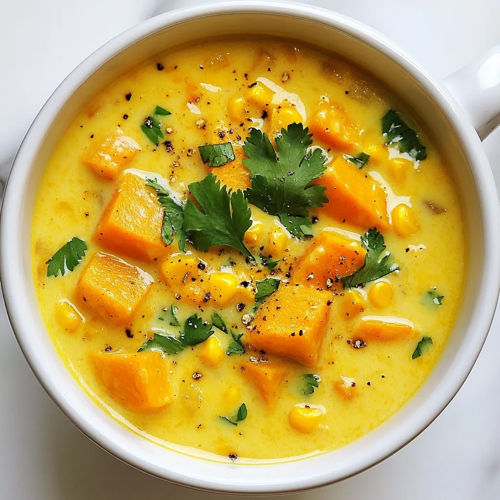 A delicious and creamy chowder made with sweet potatoes and corn, perfect for a cozy meal.