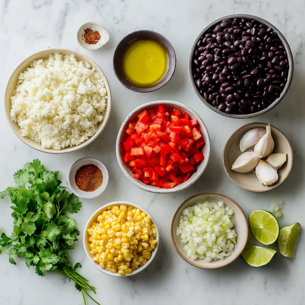 A flavorful and healthy skillet dish featuring riced cauliflower, black beans, and taco seasoning.
