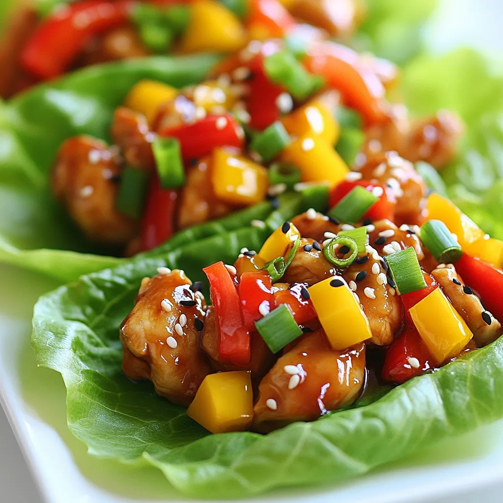 To serve, take a large lettuce leaf. Spoon a generous portion of the teriyaki chicken mixture into each leaf. Garnish with extra green onions and sprinkle black sesame seeds on top if you like. Enjoy this fresh, flavorful meal!
