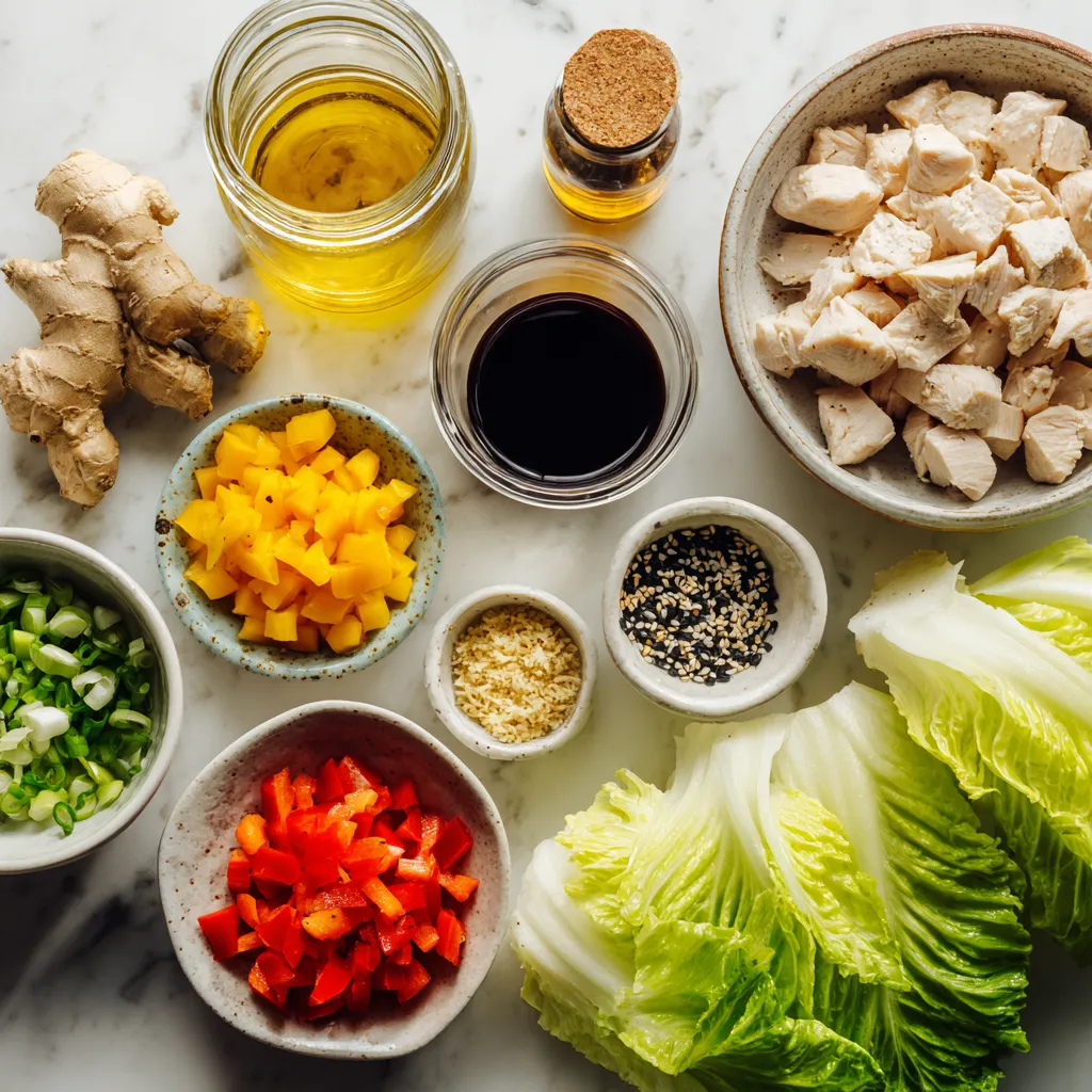 For color and crunch, add bell peppers and green onions. The bell peppers can be red or yellow. Both add sweetness and brightness. The lettuce leaves serve as your wrap. Butter lettuce is soft and easy to fold. Romaine is crisp and sturdy. Choose what you like best!
