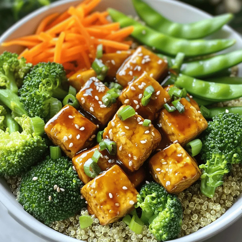 Tofu is the star of this dish. Firm tofu holds its shape well and absorbs flavors nicely. Pressing it helps remove excess water, making it crispier when baked. Teriyaki sauce adds a sweet and savory flavor. It glazes the tofu, making it tasty. Quinoa serves as a healthy base. It is high in protein and has a nice texture. Fresh vegetables like broccoli, carrots, and snap peas add color and crunch. They provide vitamins and minerals, boosting the dish’s nutrition.