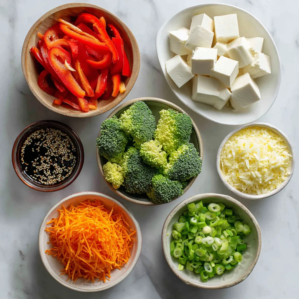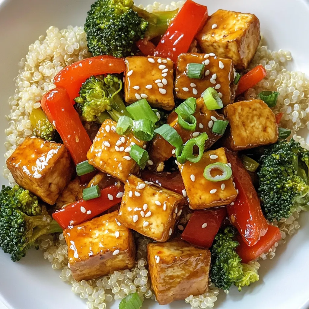 For a beautiful plate, use deep bowls. Arrange the colorful veggies and crispy tofu nicely. Garnish with green onions and sesame seeds. This adds a nice pop of color and crunch.