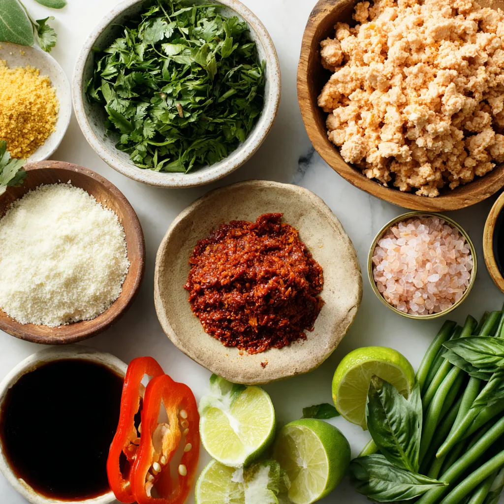 To make Thai red curry meatballs, you need these fresh and tasty ingredients. Each one adds to the rich flavor of the dish. Here’s the list: