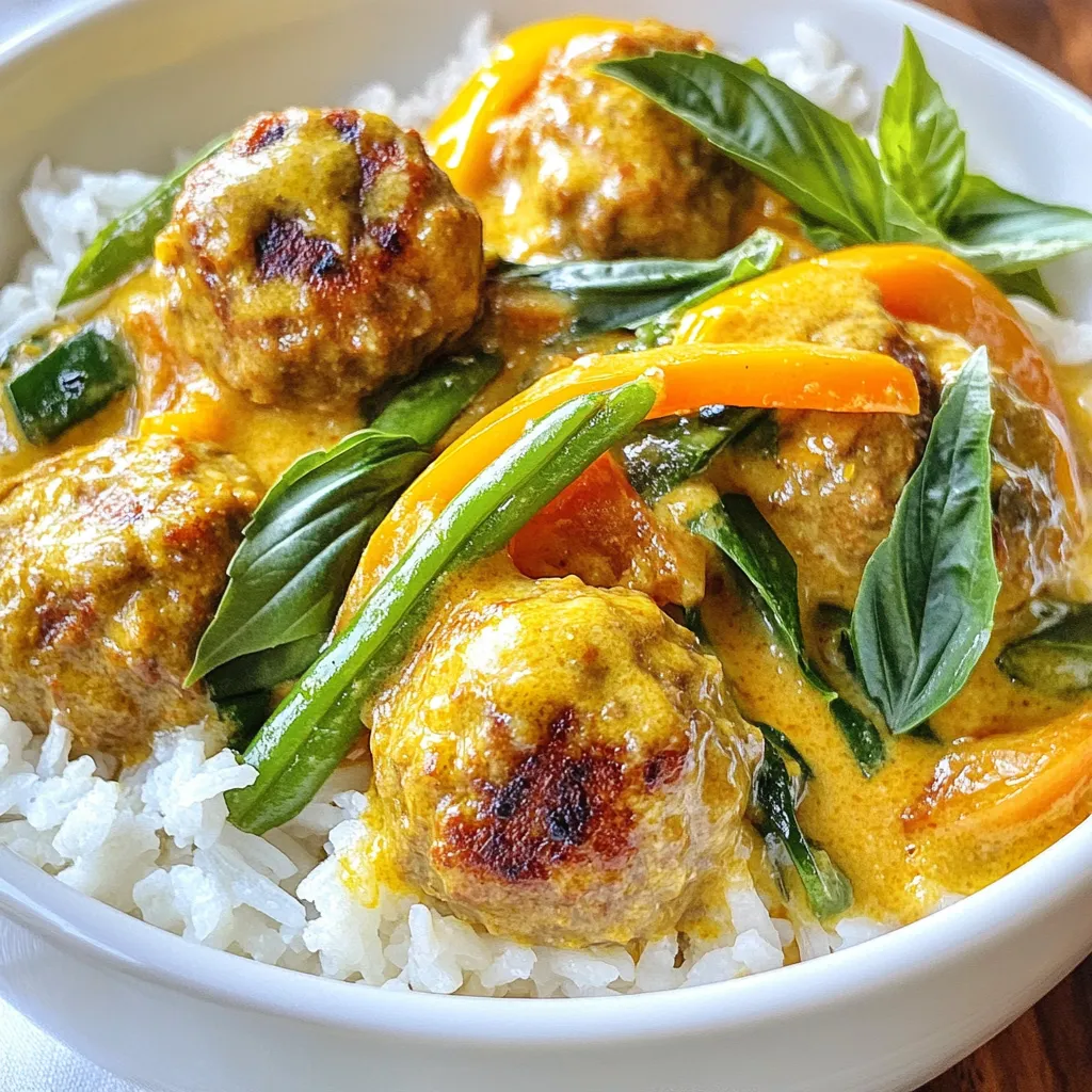 Serve the Thai red curry meatballs hot. Place them over a bed of cooked jasmine rice. For a fresh touch, add some basil leaves on top. Enjoy the mix of tastes and textures in every bite!