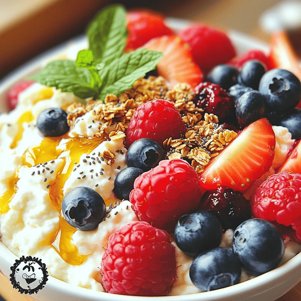 - 1 cup cottage cheese - 1 tablespoon honey or maple syrup - 1 teaspoon vanilla extract - 1/2 cup mixed berries (strawberries, blueberries, raspberries) To make this bowl, start with high-quality cottage cheese. It gives the best taste and texture. The honey or maple syrup adds a nice touch of sweetness. You can choose either based on your taste. Vanilla extract brings warmth and depth to the flavor. Lastly, mixed berries offer a burst of freshness. They are colorful and healthy. - 1/4 cup granola - Chia seeds or nuts - Fresh mint leaves You can add granola for crunch and texture. It makes the bowl more filling. Chia seeds or nuts give you a nice crunch and extra nutrition. Fresh mint leaves are great for garnish. They add a pop of color and freshness. This recipe serves 2, making it perfect for sharing. It only takes 10 minutes to prep, so it is simple and quick. Nutritionally, this bowl is packed with protein from cottage cheese. Berries add vitamins and antioxidants. Adding granola or nuts boosts fiber and healthy fats. This dish is balanced and supports a healthy diet. To start, grab a mixing bowl. In this bowl, combine: - 1 cup cottage cheese - 1 tablespoon honey or maple syrup - 1 teaspoon vanilla extract Mix these ingredients well. You want to blend them until smooth. Next, use a hand mixer or a blender. Whip the mixture on medium speed. This should take about 1-2 minutes. You want it creamy and light. Now it’s time to build your bowl. Take a serving bowl and spoon the whipped cottage cheese in. Spread it out to create a nice base. Then, layer your mixed berries on top. Use 1/2 cup of berries like strawberries, blueberries, and raspberries. Distribute them evenly for the best look. To add some crunch, sprinkle 1/4 cup of granola over the berries. You can also add chia seeds or chopped nuts if you want. These will give your bowl extra texture and flavor. Finally, garnish with fresh mint leaves. This adds a pop of color and a fresh taste. Enjoy your Whipped Cottage Cheese Berry Bowl! For a sweet touch, you can swap honey for agave syrup. It gives a nice flavor. If you want a different taste, try brown sugar. For maple syrup, you can use coconut sugar instead. When picking vanilla extract, look for pure vanilla. It has more flavor than fake vanilla. If you want a unique taste, try vanilla bean paste. It adds a lovely aroma and flavor. To whip cottage cheese well, use a hand mixer or blender. Start on a low speed to avoid splatters. Gradually increase the speed until smooth. This usually takes 1-2 minutes. To avoid lumps, ensure your cottage cheese is at room temperature. Cold cheese can be harder to whip. If lumps remain, blend a bit longer. You want a creamy, fluffy texture. This bowl is great for breakfast or a snack. Pair it with whole-grain toast or a smoothie. You can also add a side of eggs for extra protein. Each ingredient has benefits. Cottage cheese is high in protein. Berries are full of vitamins and antioxidants. Granola adds fiber and crunch. Together, they make a balanced meal that keeps you full. {{image_2}} You can mix up your berry bowl with fun combos. For a summer berry bowl, use fresh strawberries, blueberries, and raspberries. This blend gives a sweet and tart taste. You can also try a tropical twist with mango. Just add diced mango to your favorite berries for a juicy kick. If you want a dairy-free option, use almond or coconut yogurt instead of cottage cheese. It gives a creamy texture and works great with berries. For low-sugar options, skip the honey or maple syrup. Instead, try using mashed banana or a sugar-free sweetener. Both choices keep your bowl tasty and healthy. Adding spices can elevate your bowl. A pinch of cinnamon adds warmth and depth. Try mixing in some yogurt or nut butter for extra creaminess and flavor. Nut butter also gives a nice protein boost. Get creative and make your bowl unique! To keep your whipped cottage cheese fresh, store it in an airtight container. Glass or plastic containers work well. Make sure to seal it tightly to avoid air exposure. This will help keep the creamy texture and flavors intact. You can freeze the whipped cottage cheese mixture if you have leftovers. Place it in a freezer-safe container. Leave some space at the top for expansion. When ready to use, defrost it in the fridge overnight. For best quality, avoid refreezing. Whipped cottage cheese stored in the fridge lasts about 3 to 5 days. The mixed berries stay fresh for about 2 to 3 days. Discard any leftovers if you notice an off smell or change in texture. Always check before enjoying your delicious creation! Yes, you can make this recipe ahead of time. Prepare the whipped cottage cheese base and store it in the fridge. Add berries and granola just before serving. This keeps everything fresh and crunchy. I love using a mix of strawberries, blueberries, and raspberries. These berries add great flavor and color. You can also try blackberries or even sliced peaches for variety. Whipped cottage cheese is very healthy. It is high in protein and low in fat. It also provides calcium and vitamins. This makes it a great choice for breakfast or snacks. To make this recipe vegan, use plant-based cottage cheese. You can find brands made from almonds or cashews. Replace honey with maple syrup or agave nectar for sweetness. Yes, you can easily adjust the sweetness. Start with less honey or syrup and taste as you go. This way, you can find the perfect balance that suits your taste. This recipe shows how to create a simple and tasty berry bowl using cottage cheese. You learned about key ingredients like honey, berries, and optional toppings. I shared tips for better flavor and texture, as well as variations to keep it fun. Storage tips help keep your leftovers fresh. I encourage you to try different combinations and make it your own. Enjoy your delicious and healthy creation!